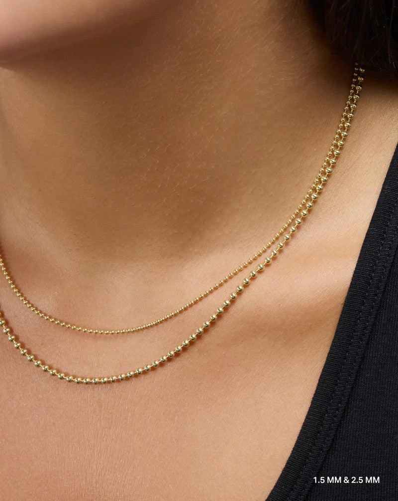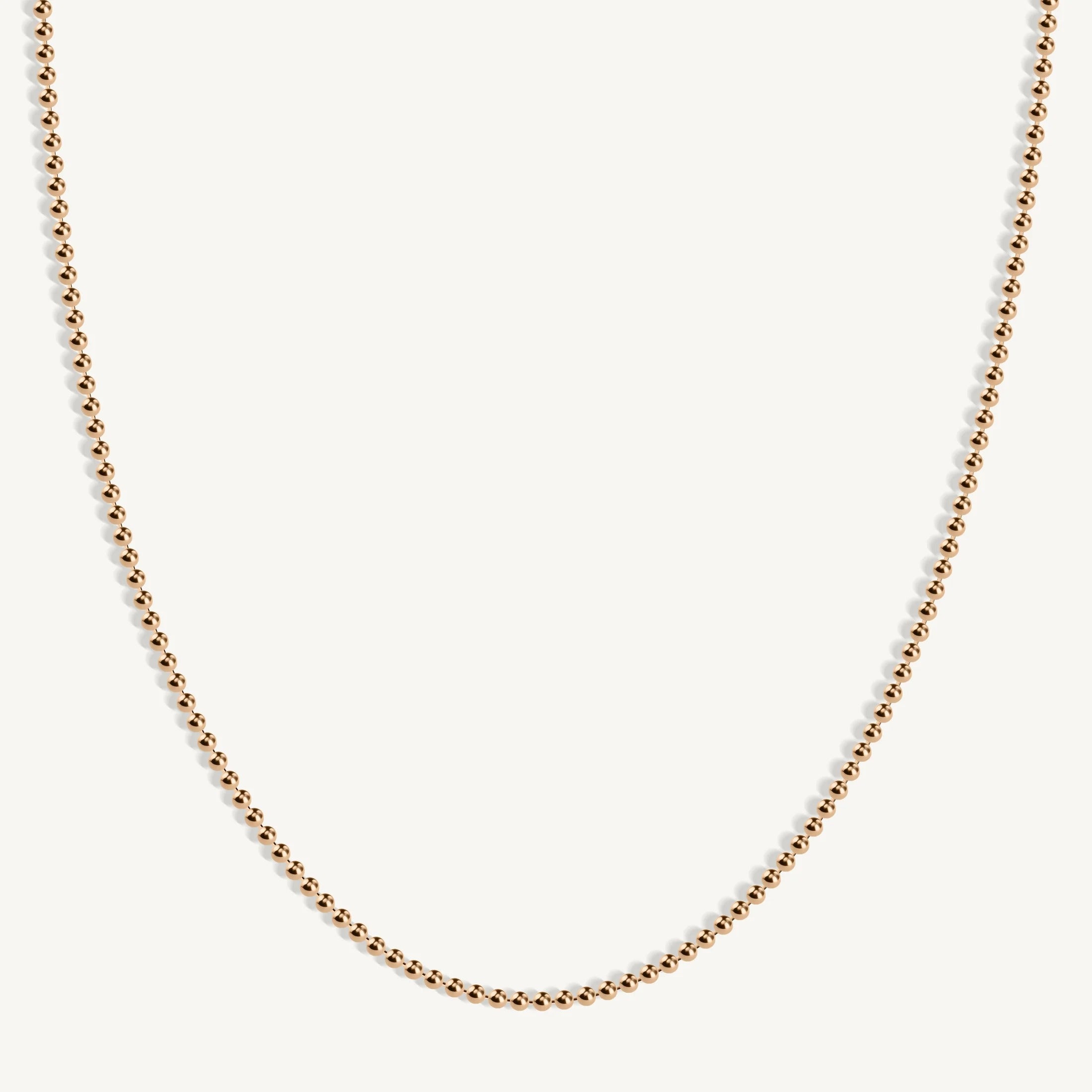 A timeless essential, the 14K Gold Bead Chain Necklace is handcrafted in Italy from solid yellow gold. Each polished bead catches the light with subtle radiance, adding refined texture and soft dimension to any look.