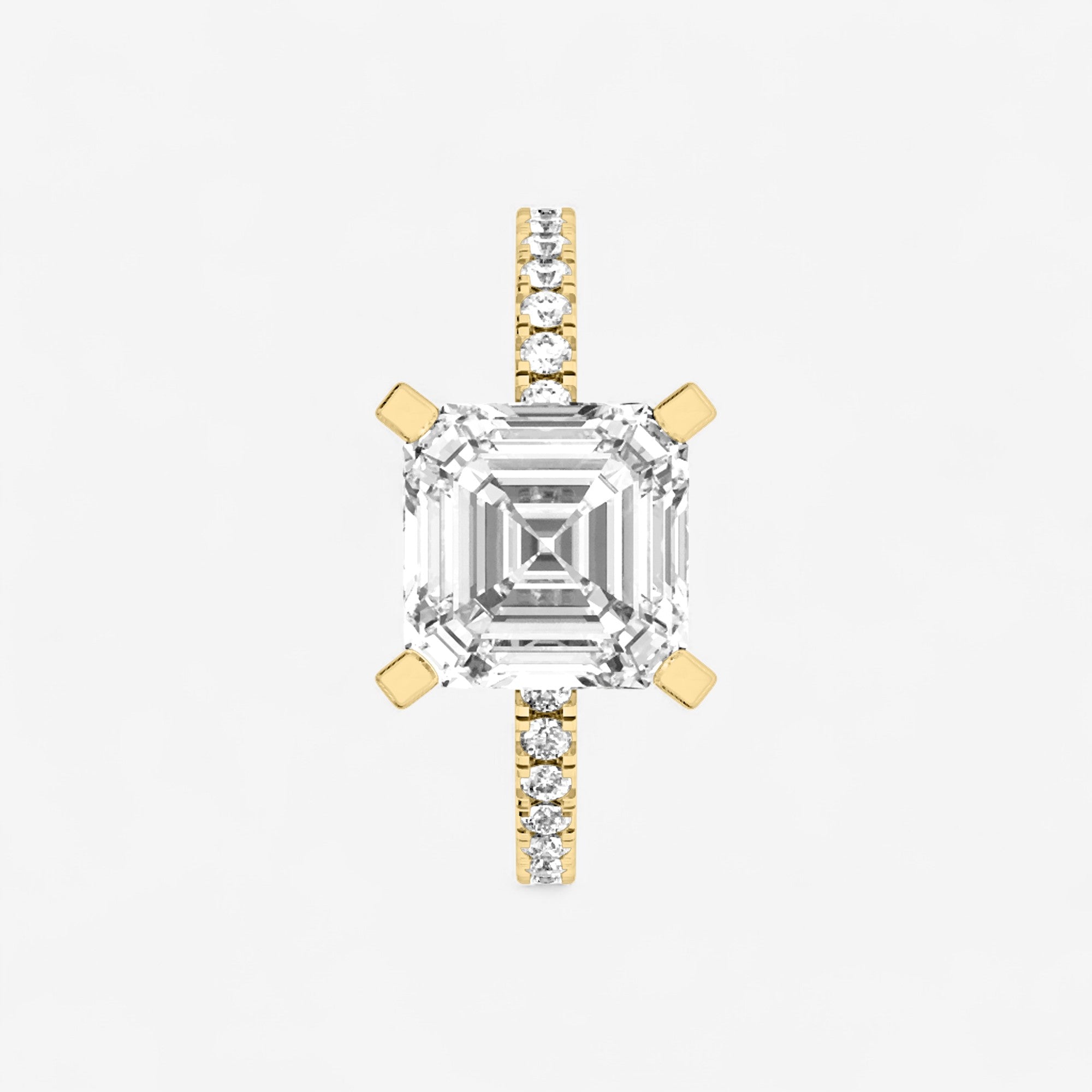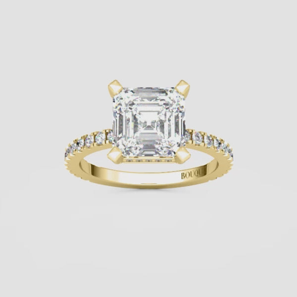 Discover the Hidden Halo Asscher Cut Engagement Ring, where refined elegance blends with radiant sparkle. Meticulously crafted, this stunning ring features a brilliant Asscher cut center stone encircled by a subtle halo of shimmering Lab Grown diamonds, enhancing its enchanting appeal. Its sleek and timeless design makes it a perfect symbol of enduring love. Celebrate your unique love story with this sophisticated and graceful ring, destined to become a treasured keepsake for a lifetime.