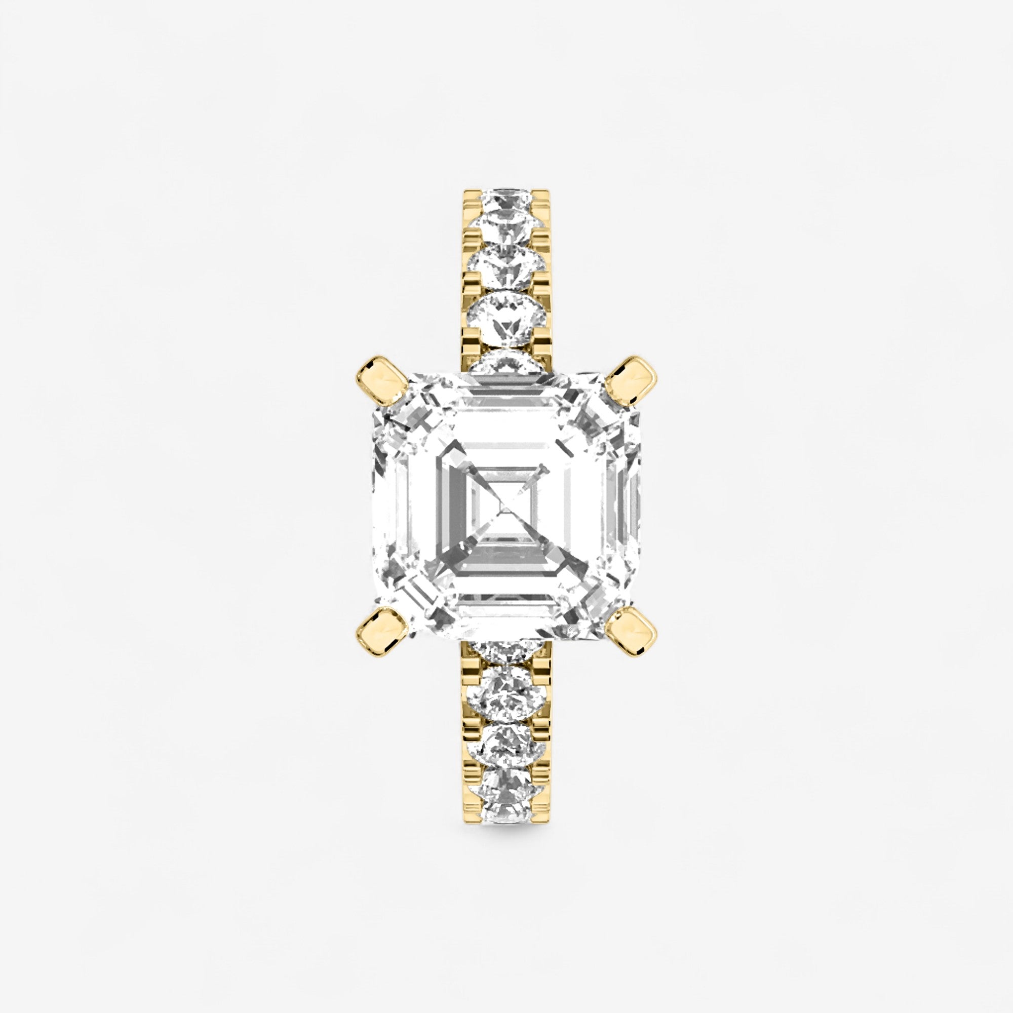 Asscher Split Prong Side Stone Engagement Ring