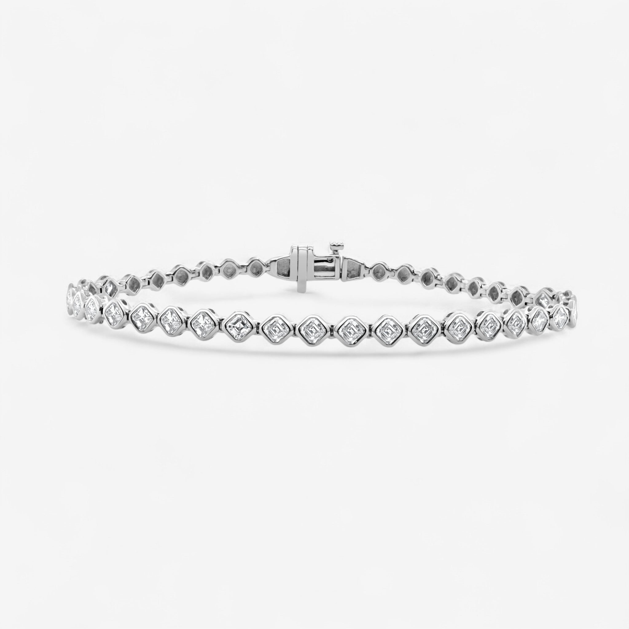Introducing the Bezel Set Round Asscher Tennis Bracelet, featuring meticulously crafted Asscher-cut stones securely framed in a sleek bezel setting. Its refined design offers timeless sophistication and a comfortable fit, making it the perfect accessory for both everyday grace and special occasions.