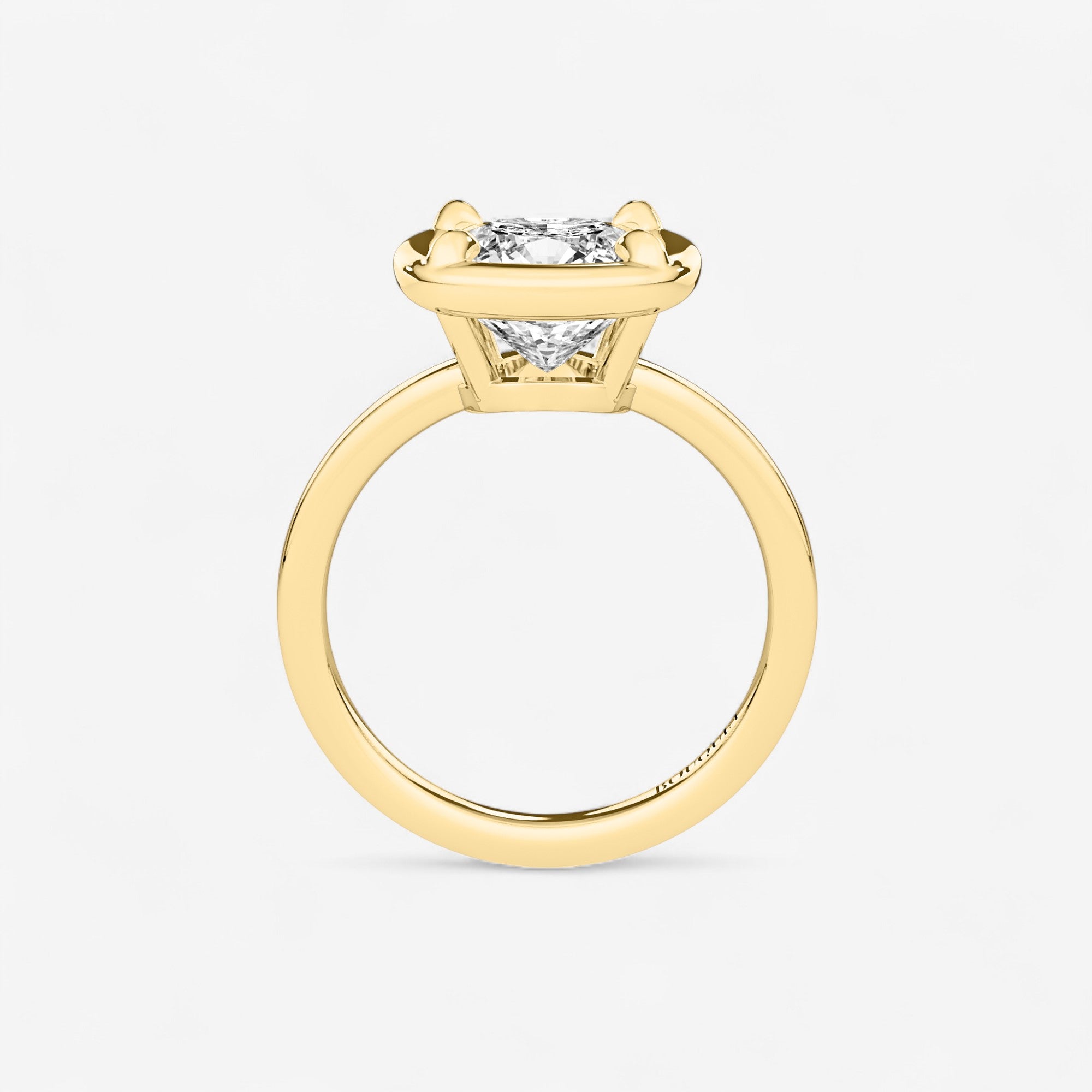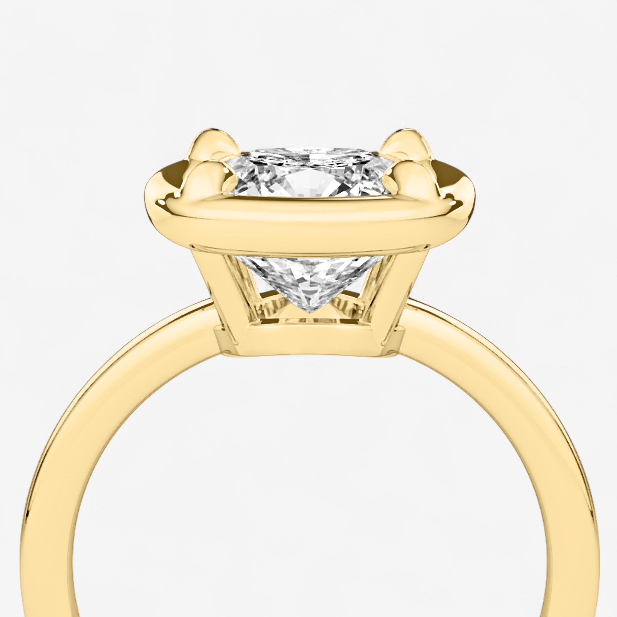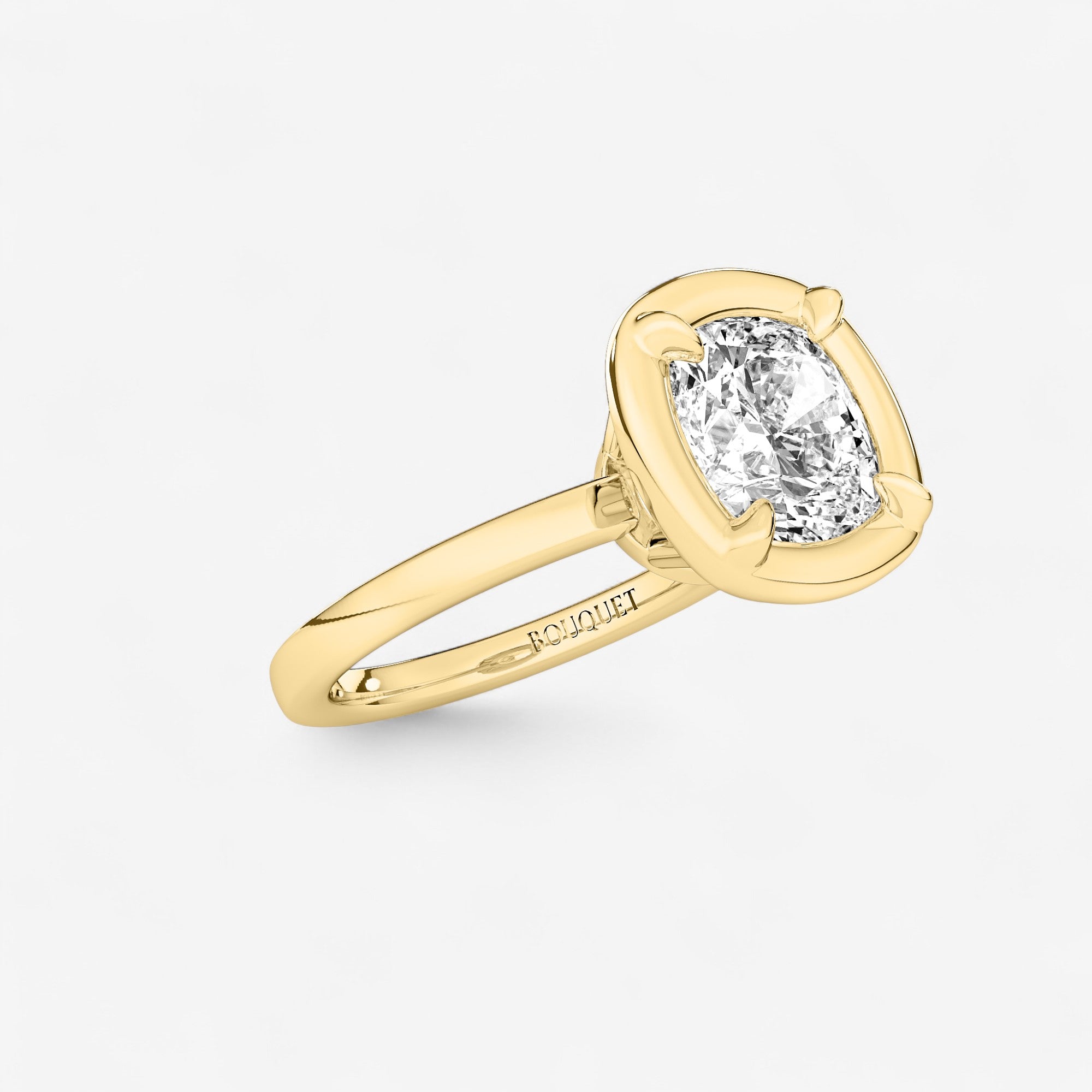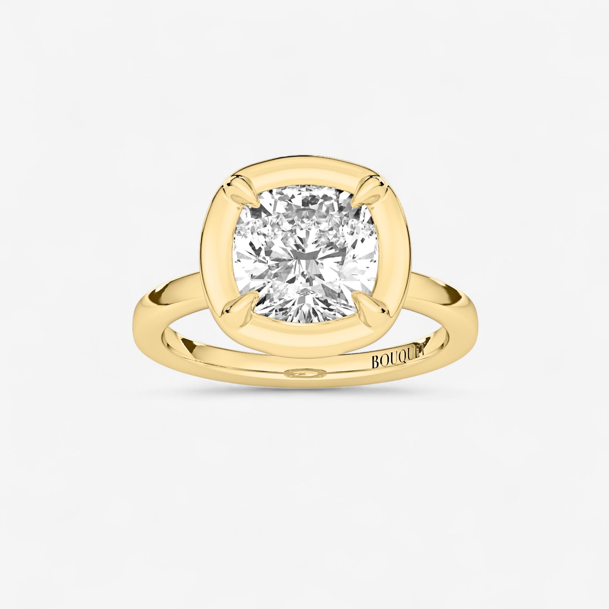 Inspired by the elegance of antique Georgian jewelry, this cushion bezel set engagement ring blends timeless design with modern craftsmanship. At its center, a brilliant lab-grown diamond is securely framed in a polished bezel, a style beloved since the 18th century for its durability and refined aesthetic. The bezel setting enhances the diamond’s natural fire and sparkle while offering a sleek, protective design ideal for everyday wear.