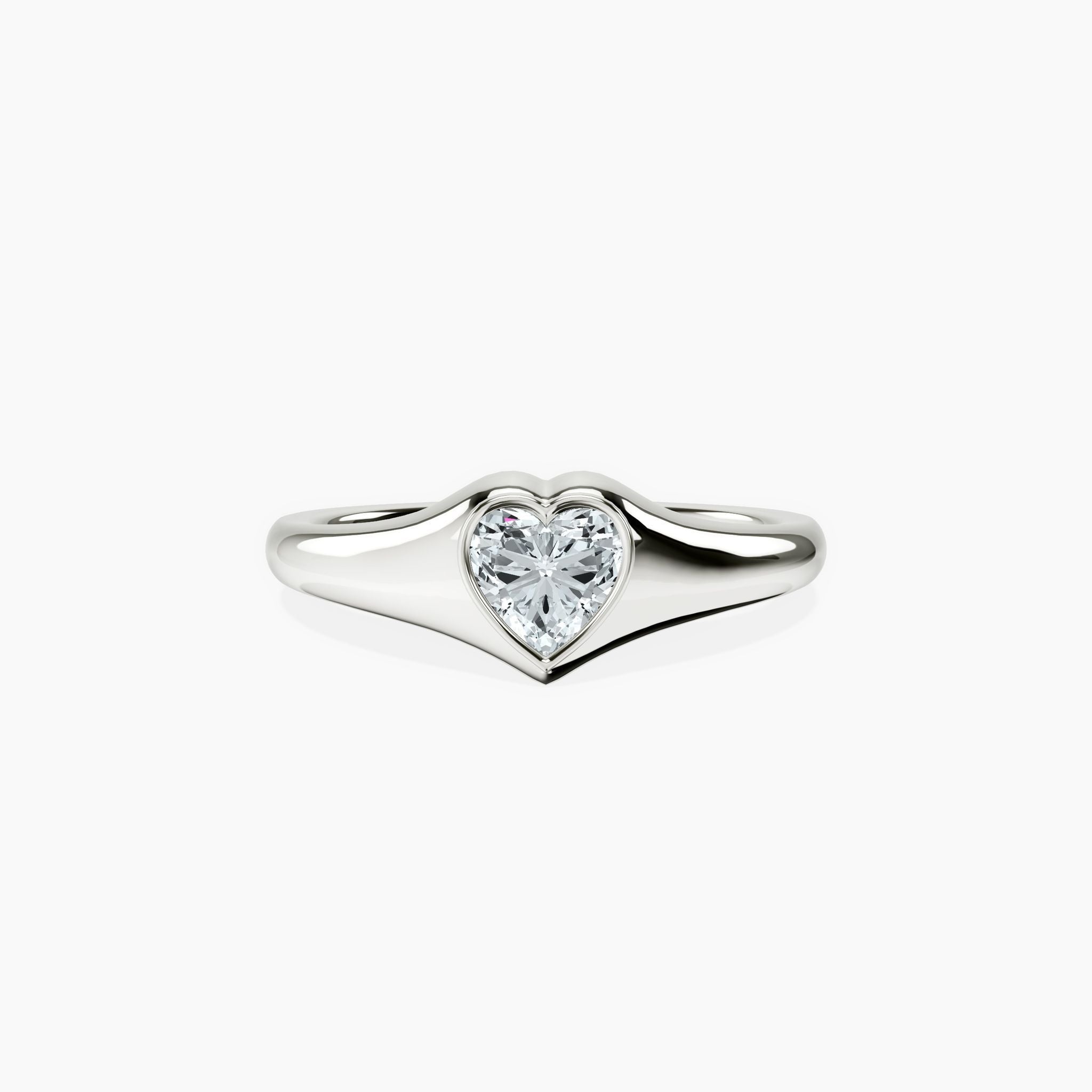 Devotion Heart Signet Ring features a luminous heart-shaped diamond cradled in a sculpted gold embrace, creating a silhouette that feels both timeless and effortlessly modern. The soft curves of the band rise gently to meet the diamond, forming a natural heart motif—subtle, romantic, and undeniably feminine.