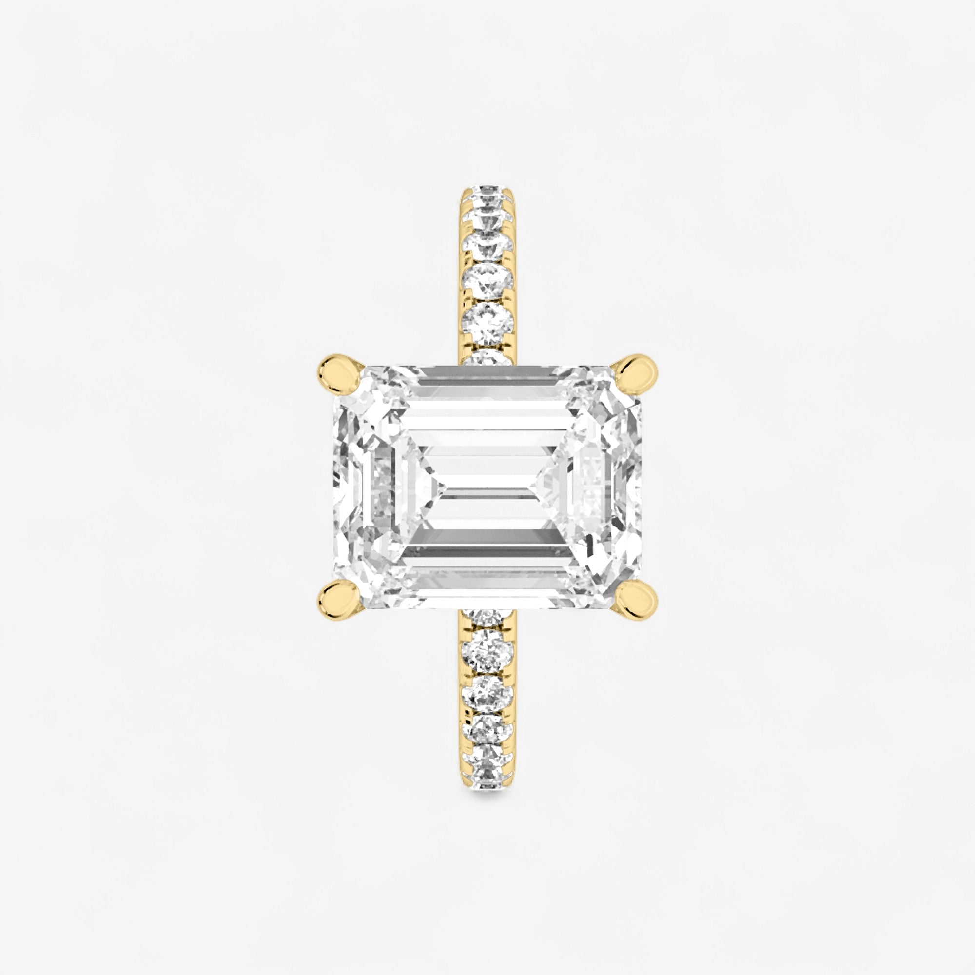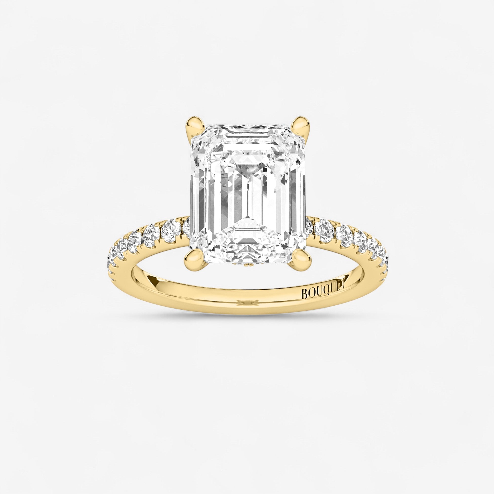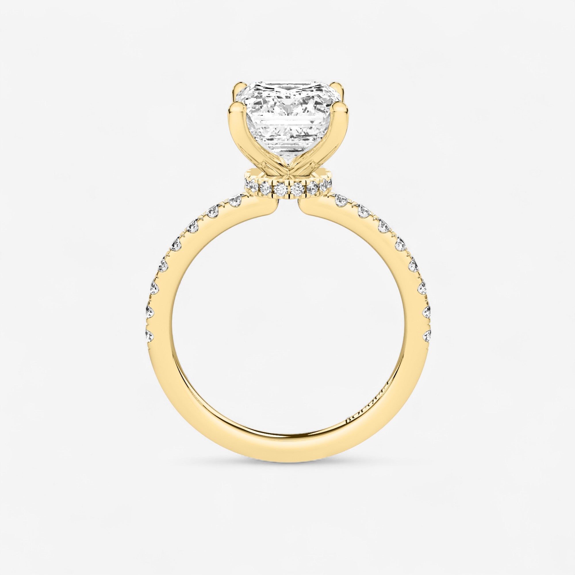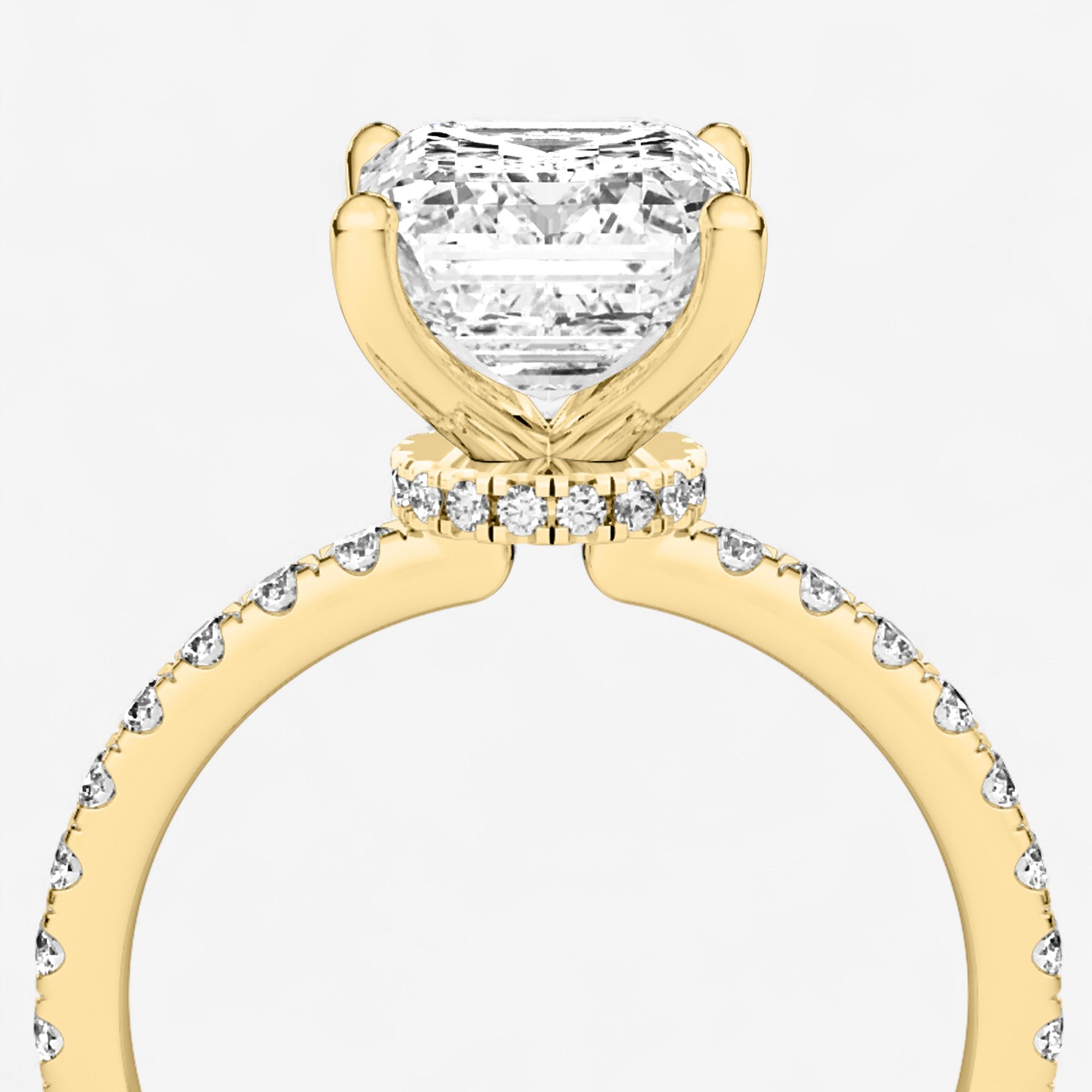 Introducing our Floating Hidden Halo Emerald Cut Engagement Ring, where sophisticated elegance blends seamlessly with radiant brilliance. Meticulously designed as a timeless symbol of commitment, this striking piece features a beautiful emerald center stone secured by four prongs without a basket, allowing maximum light to showcase its sparkle. The concealed halo beneath the setting adds dimension and shimmer, elevating its classic allure. Celebrate your unique love with the refined grace and subtle sophistication of this extraordinary engagement ring.