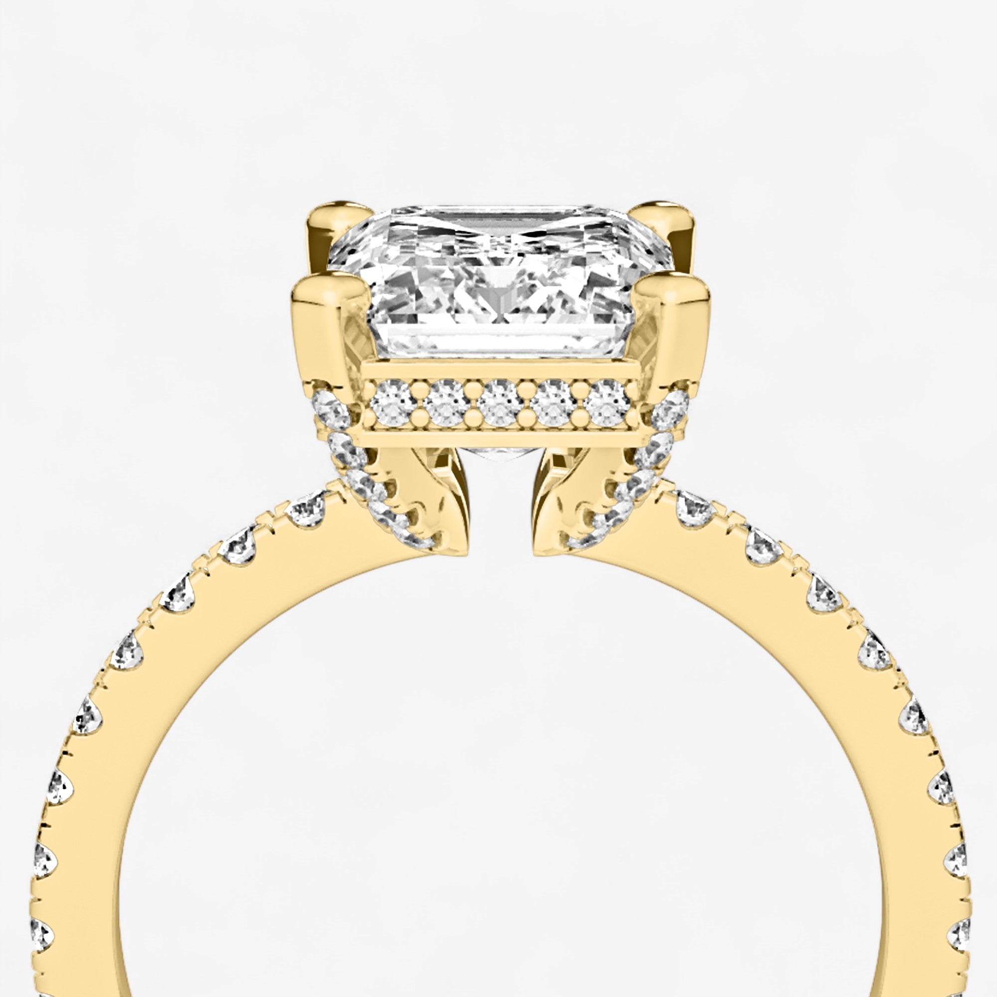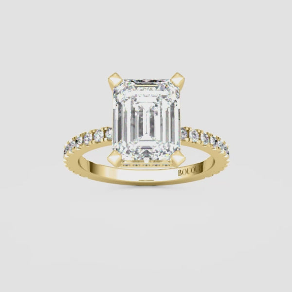 Presenting our Hidden Halo Emerald Cut Engagement Ring, a perfect blend of sophistication and radiance. Meticulously crafted, this stunning ring embodies timeless devotion. The striking emerald cut center gem is embraced by a subtle halo of sparkling Lab Grown diamonds, enhancing its enchanting glow. Its refined design and classic elegance make it an unforgettable symbol of love. Honor your unique journey with the understated beauty and grace of this exceptional ring.