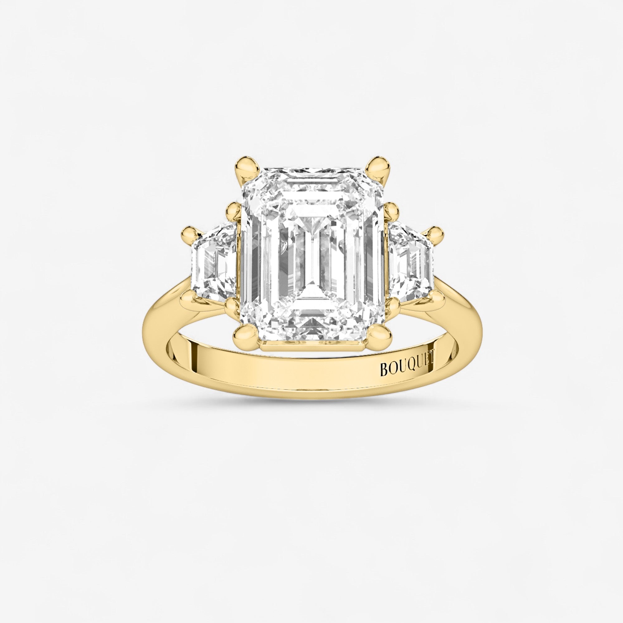 Emerald with Trapezoid Side Stones Engagement Ring