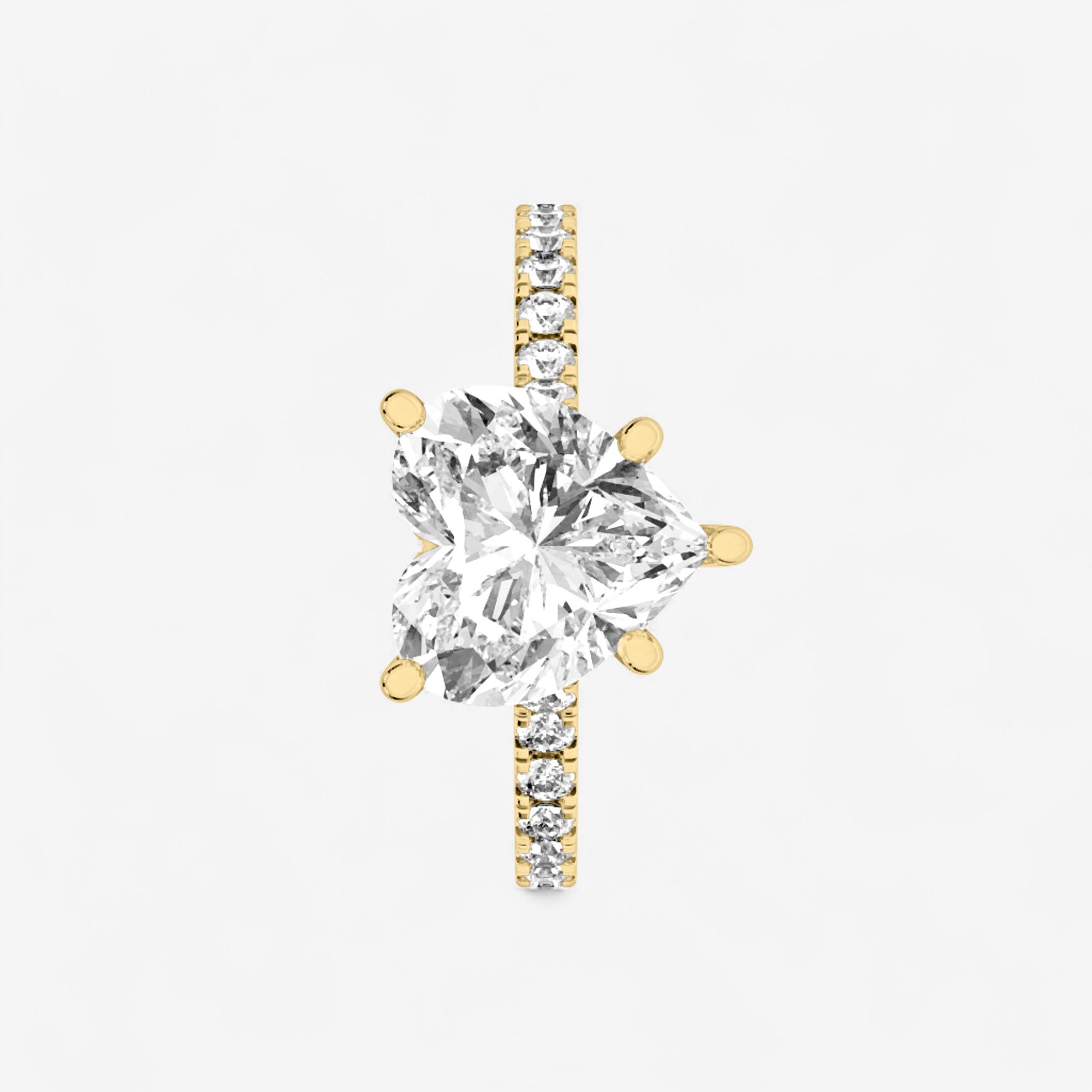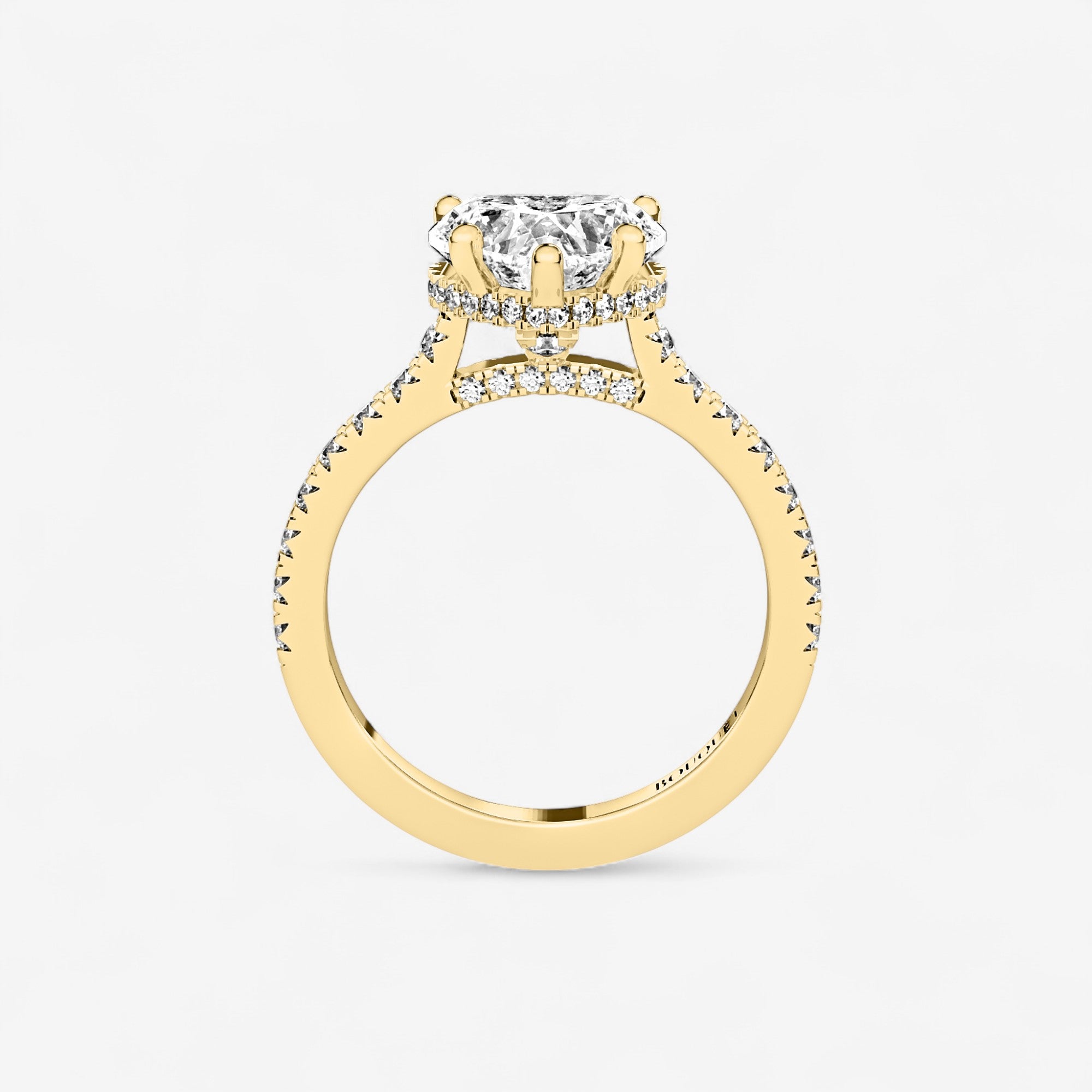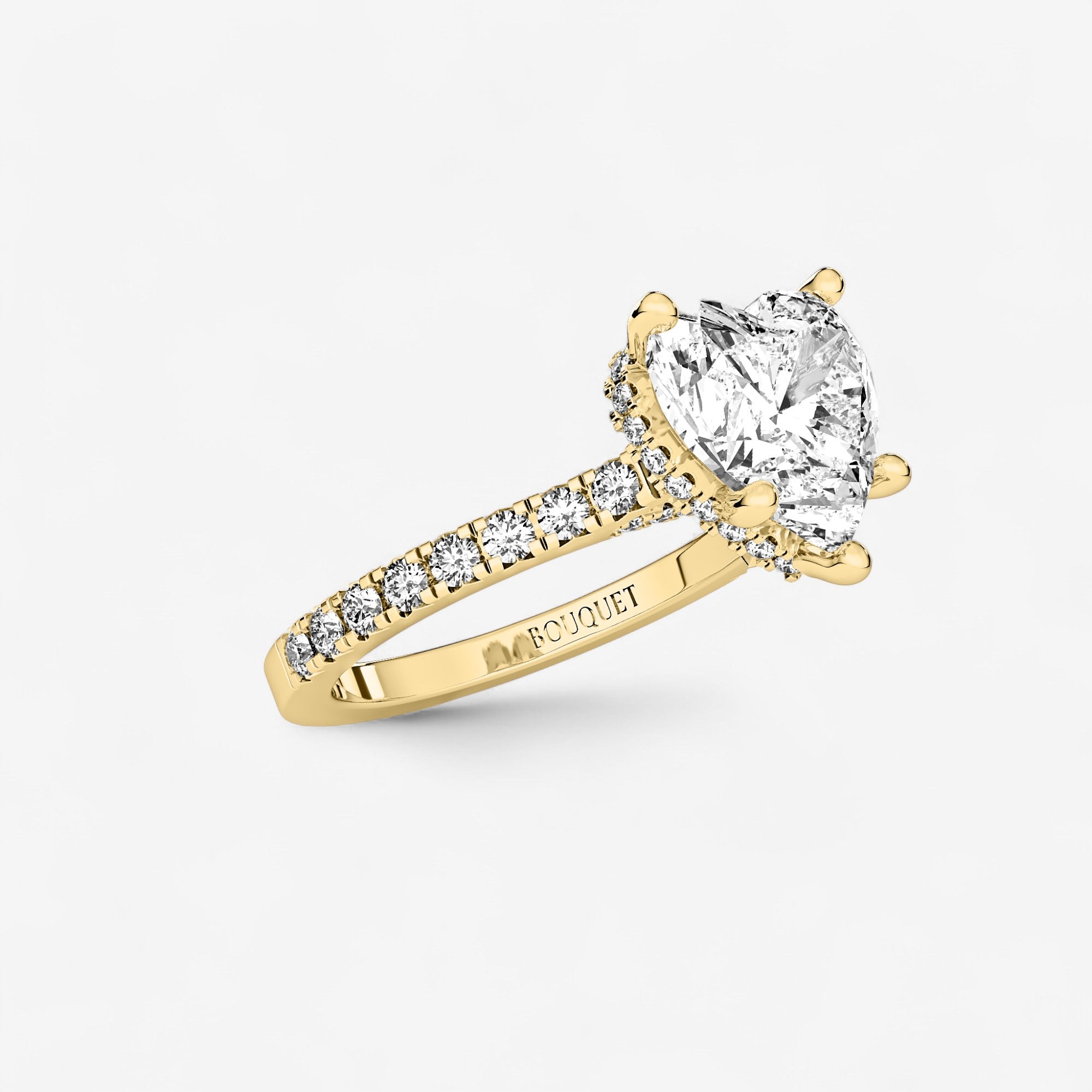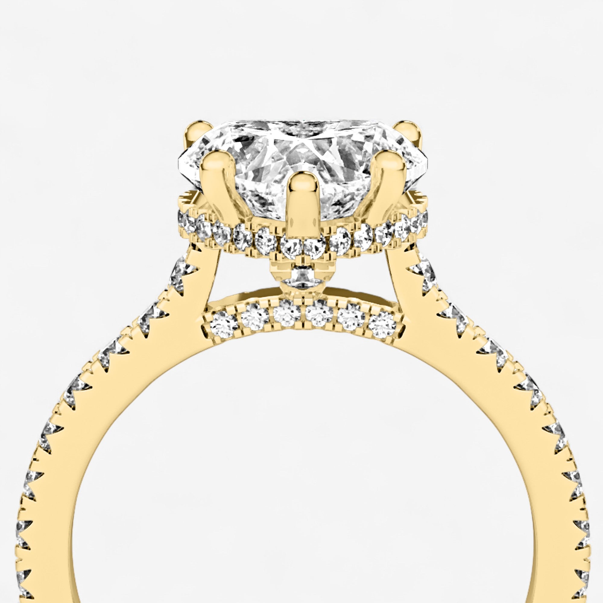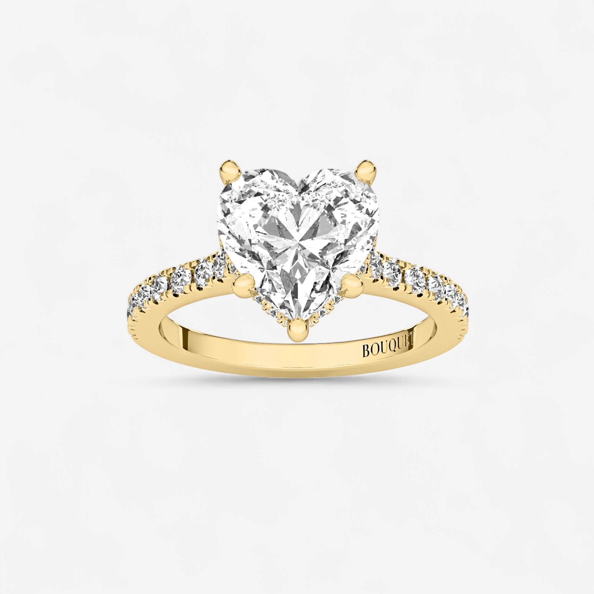 Presenting our Hidden Halo Heart Cut Pave Engagement Ring, where refined elegance meets radiant brilliance. Expertly crafted as a lasting symbol of devotion, this exquisite piece showcases a stunning heart center stone encircled by a delicate halo of sparkling lab-grown diamonds. The pave-set side stones and additional accent diamonds beneath the ring’s head add depth and sparkle, enhancing its timeless beauty. Honor your love story with the understated sophistication and grace of this exceptional engagement ring.