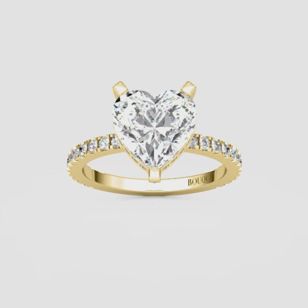 Presenting the Hidden Halo Heart Cut Engagement Ring, a perfect blend of grace and sparkle. Meticulously crafted, this stunning ring symbolizes enduring love. Its mesmerizing heart-shaped center stone is embraced by a subtle halo of radiant Lab Grown diamonds, enhancing its enchanting appeal. With a refined design and classic elegance, this ring is designed to captivate and become a treasured keepsake. Honor your love with the timeless sophistication of this exquisite engagement ring.