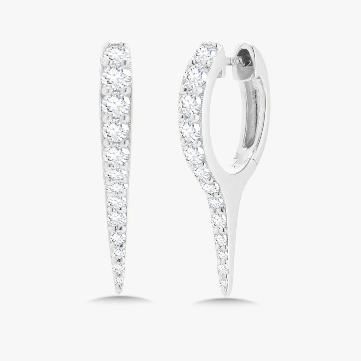Introducing our Large Helix Pavé Hoops — an elevated, sculptural twist on the classic pavé huggie. Crafted in solid 14K or 18K gold, these hoops feature a sleek tapered silhouette adorned with a seamless line of lab-grown pavé diamonds. The elongated curve catches the light from every angle, giving this everyday piece a modern, architectural edge.
