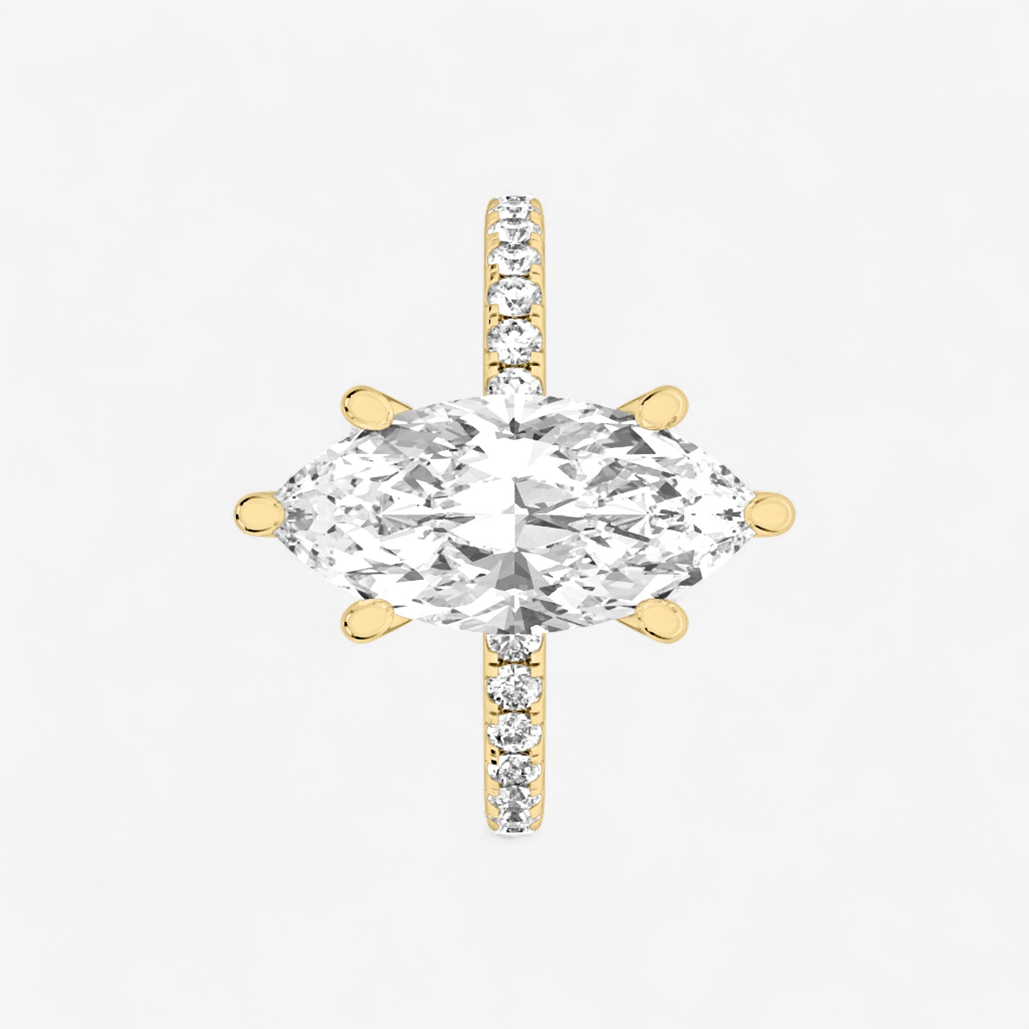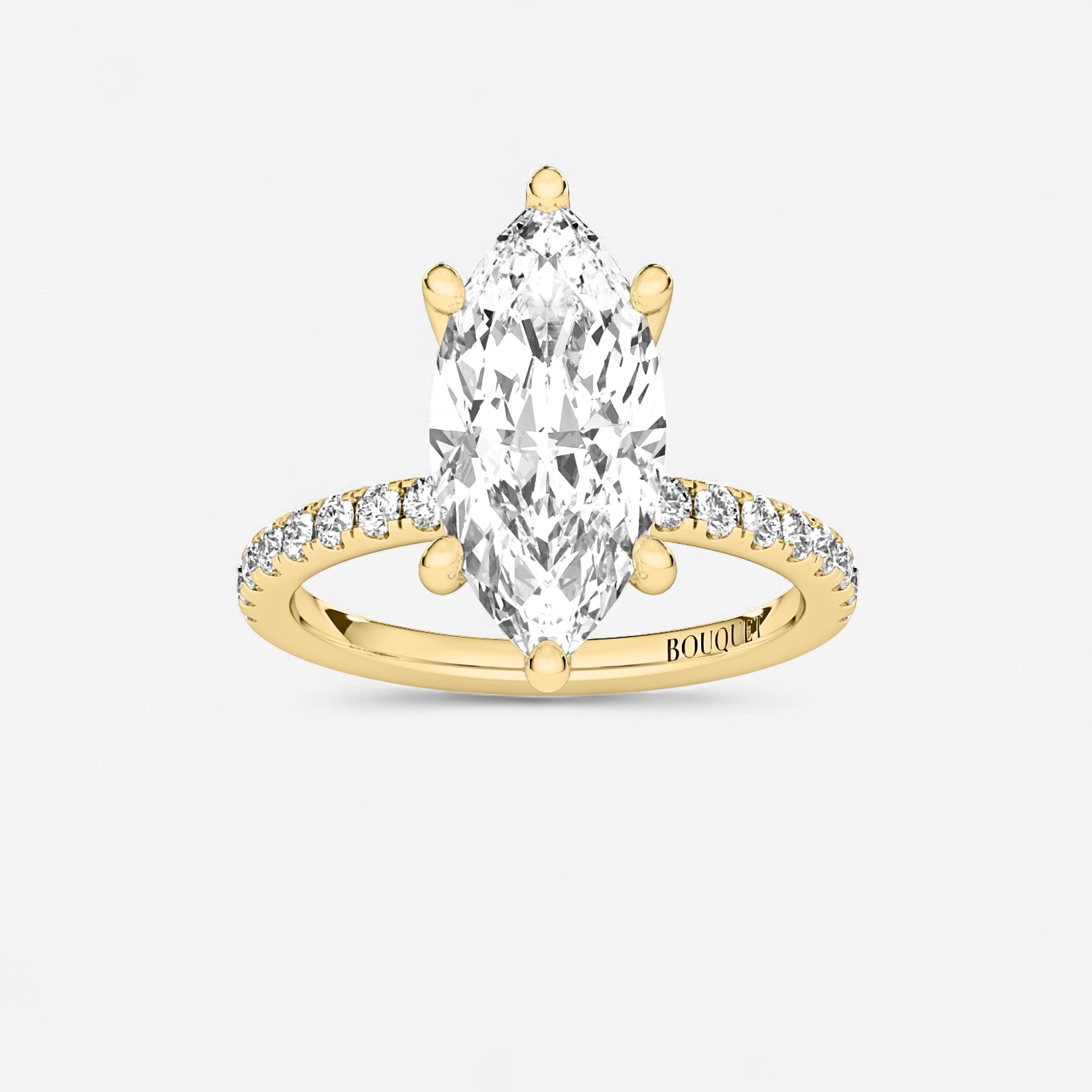 Introducing our Floating Hidden Halo Marquise Cut Engagement Ring, where sophisticated elegance blends seamlessly with radiant brilliance. Meticulously designed as a timeless symbol of commitment, this striking piece features a beautiful marquise center stone secured by four prongs without a basket, allowing maximum light to showcase its sparkle. The concealed halo beneath the setting adds dimension and shimmer, elevating its classic allure. Celebrate your unique love with the refined grace and subtle sophistication of this extraordinary engagement ring.