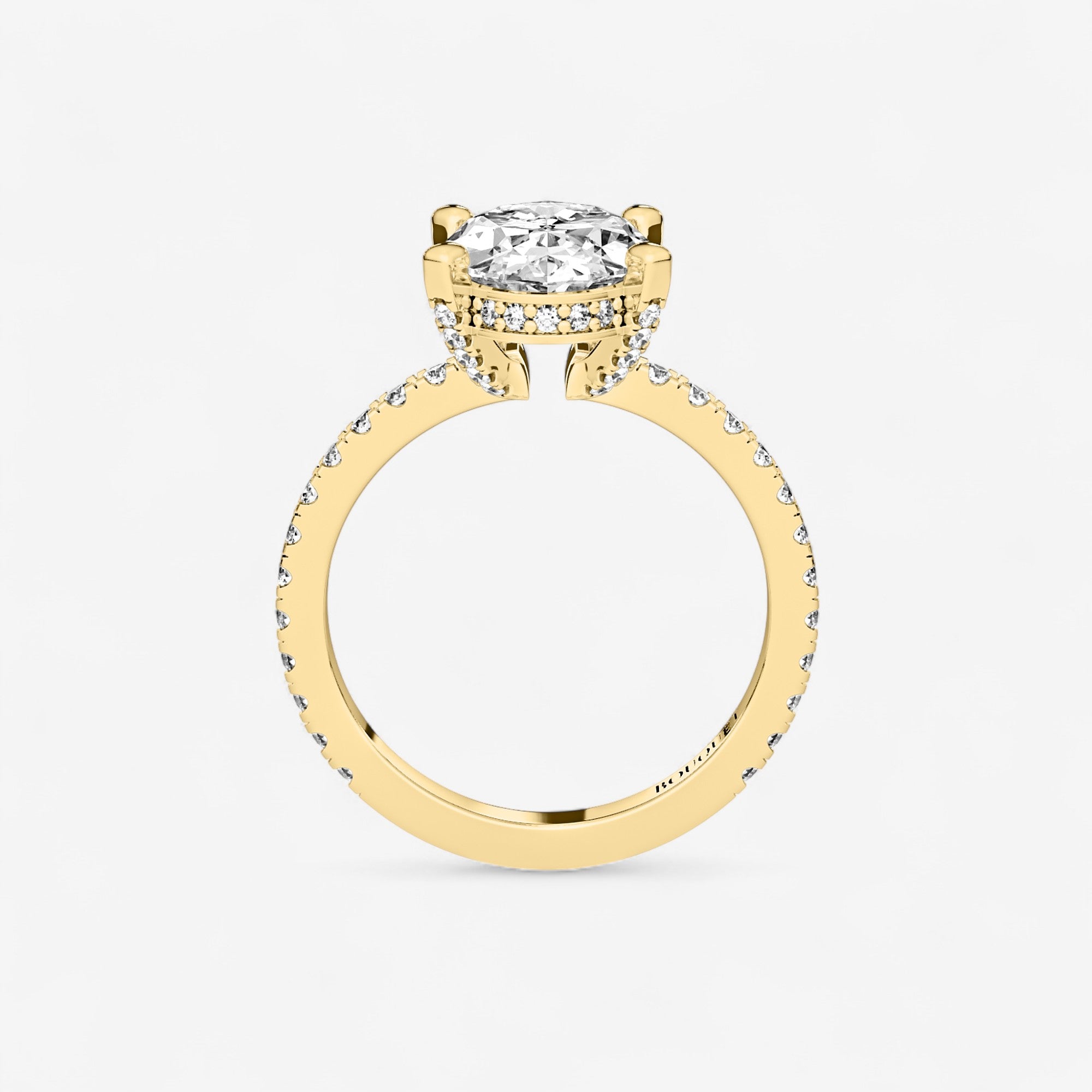 Prepare to be captivated by the exquisite Hidden Halo Oval Engagement Ring. Featuring a stunning oval-cut diamond at its center, this ring is elegantly encircled by a concealed halo of shimmering diamonds, enhancing its refined beauty. Designed with a comfortable, classic band, it offers both timeless style and wearability. An ideal expression of enduring love and devotion, this ring is perfect for creating cherished memories and celebrating lifelong commitment.