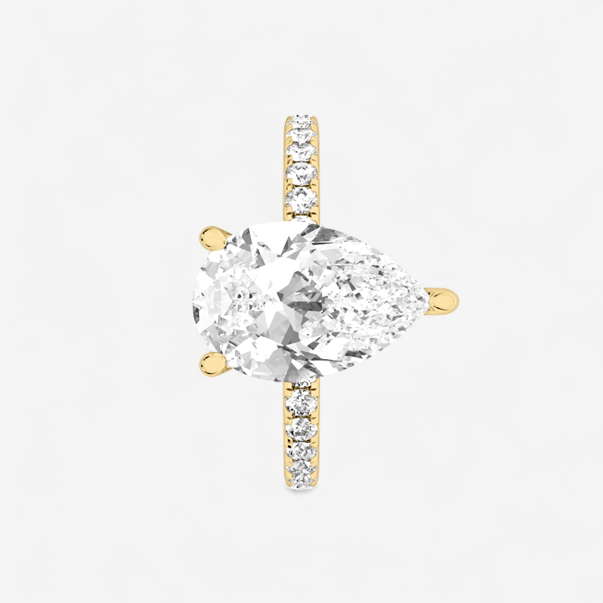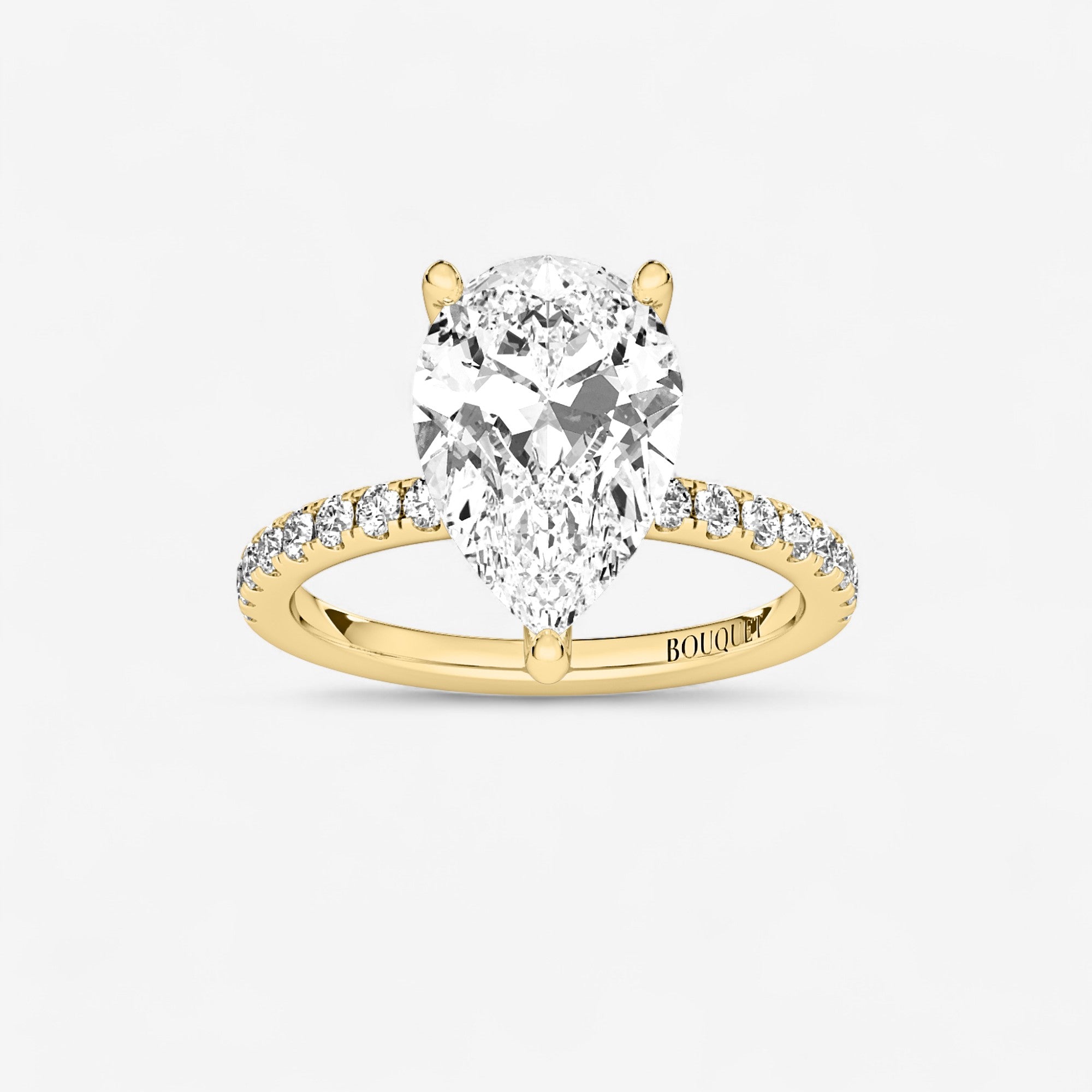 Introducing our Floating Hidden Halo Pear Cut Engagement Ring, where sophisticated elegance blends seamlessly with radiant brilliance. Meticulously designed as a timeless symbol of commitment, this striking piece features a beautiful pear center stone secured by four prongs without a basket, allowing maximum light to showcase its sparkle. The concealed halo beneath the setting adds dimension and shimmer, elevating its classic allure. Celebrate your unique love with the refined grace and subtle sophistication of this extraordinary engagement ring.