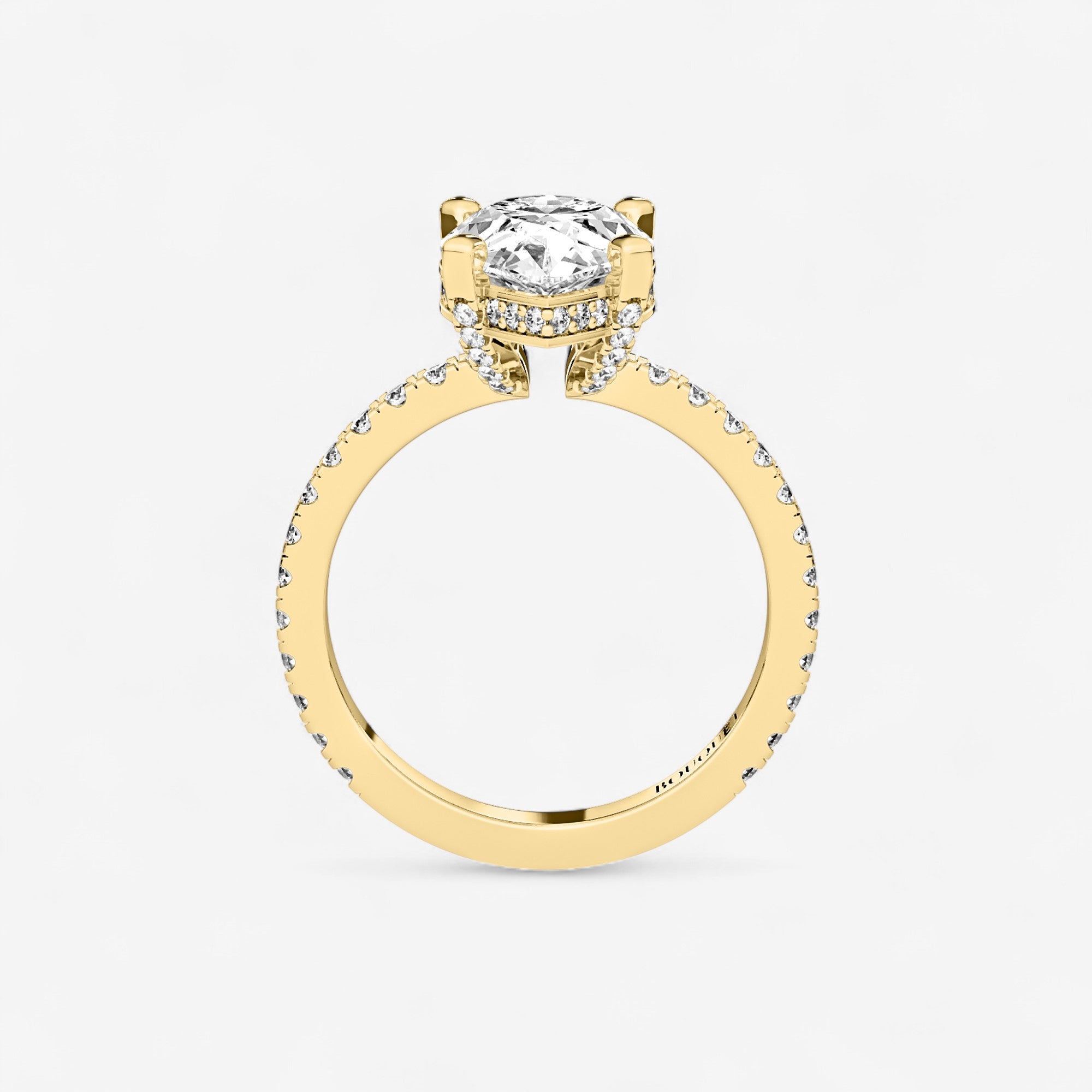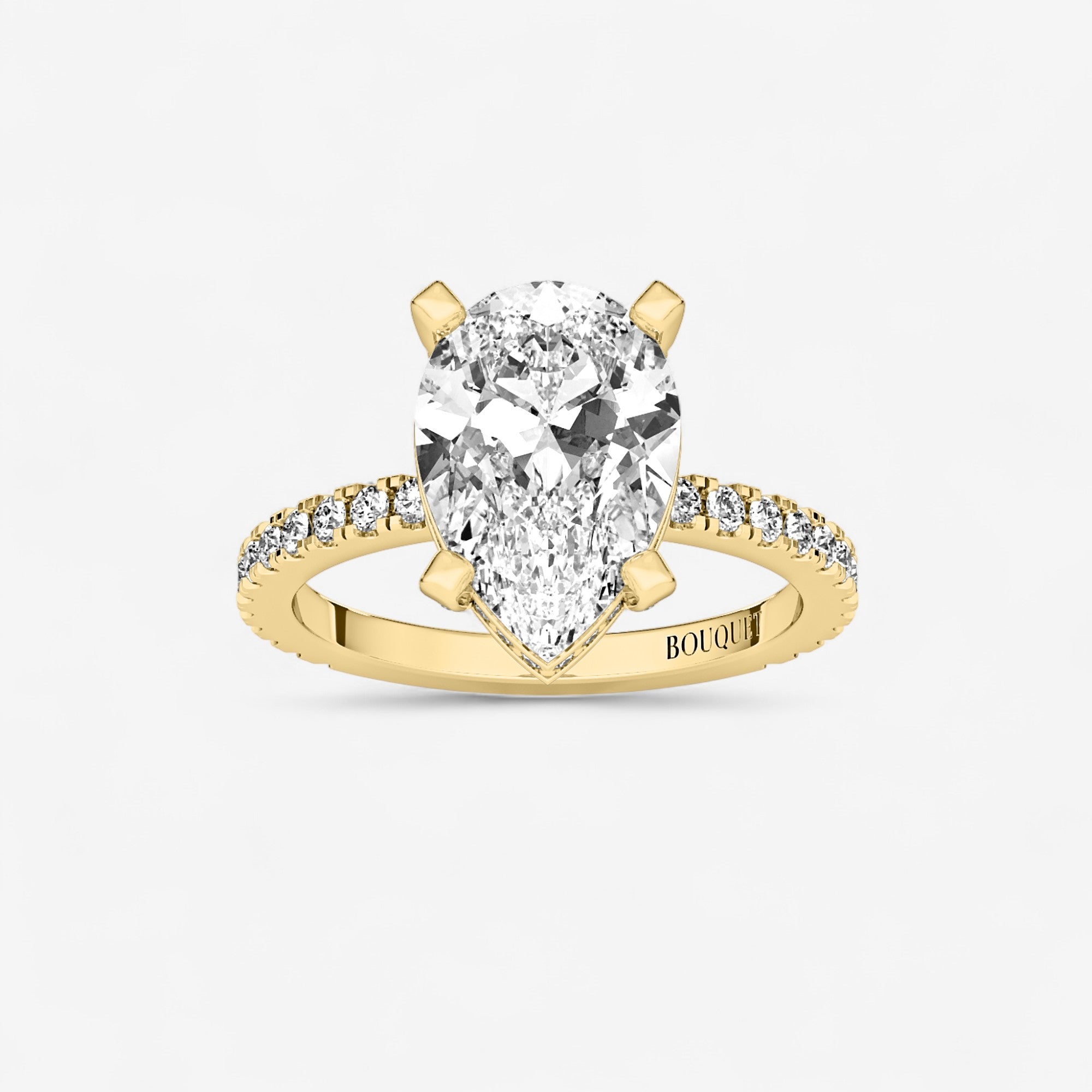 Prepare to shine with our exquisite Hidden Halo Pear Engagement Ring, a radiant emblem of enduring love and commitment. Expertly crafted, this elegant piece showcases a stunning pear-cut Lab Grown diamond embraced by a subtle hidden halo, delivering a captivating sparkle from all perspectives. Its refined design offers a comfortable, graceful fit, creating a timeless treasure your beloved will cherish forever. Elevate your proposal with the remarkable beauty of this distinguished Hidden Halo Pear Engagement Ring.