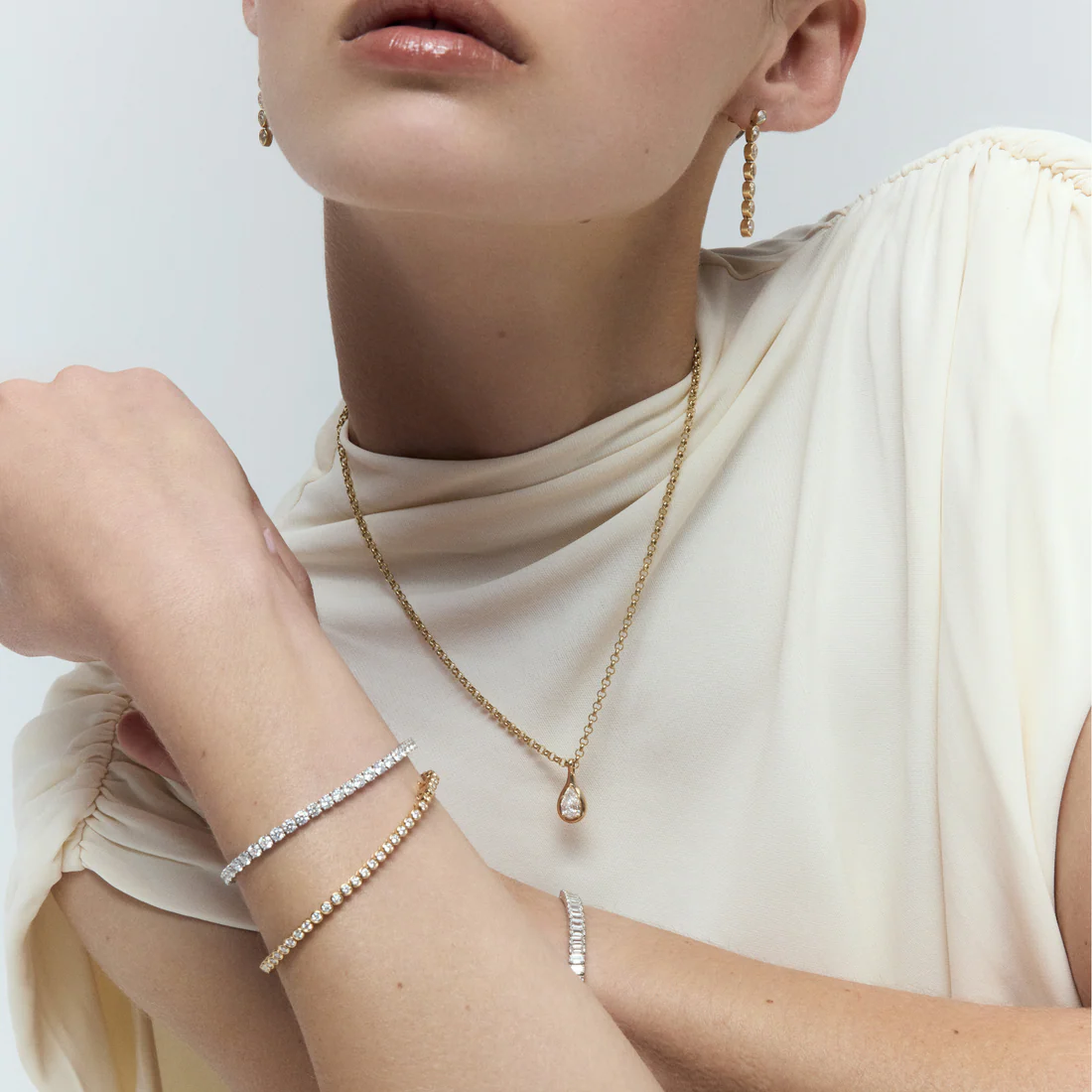 Available in yellow, white, or rose gold, the adjustable 16–18" length ensures a comfortable, customizable fit. Designed for versatility, it pairs beautifully with pendants or charms, allowing you to create a look that’s entirely your own.