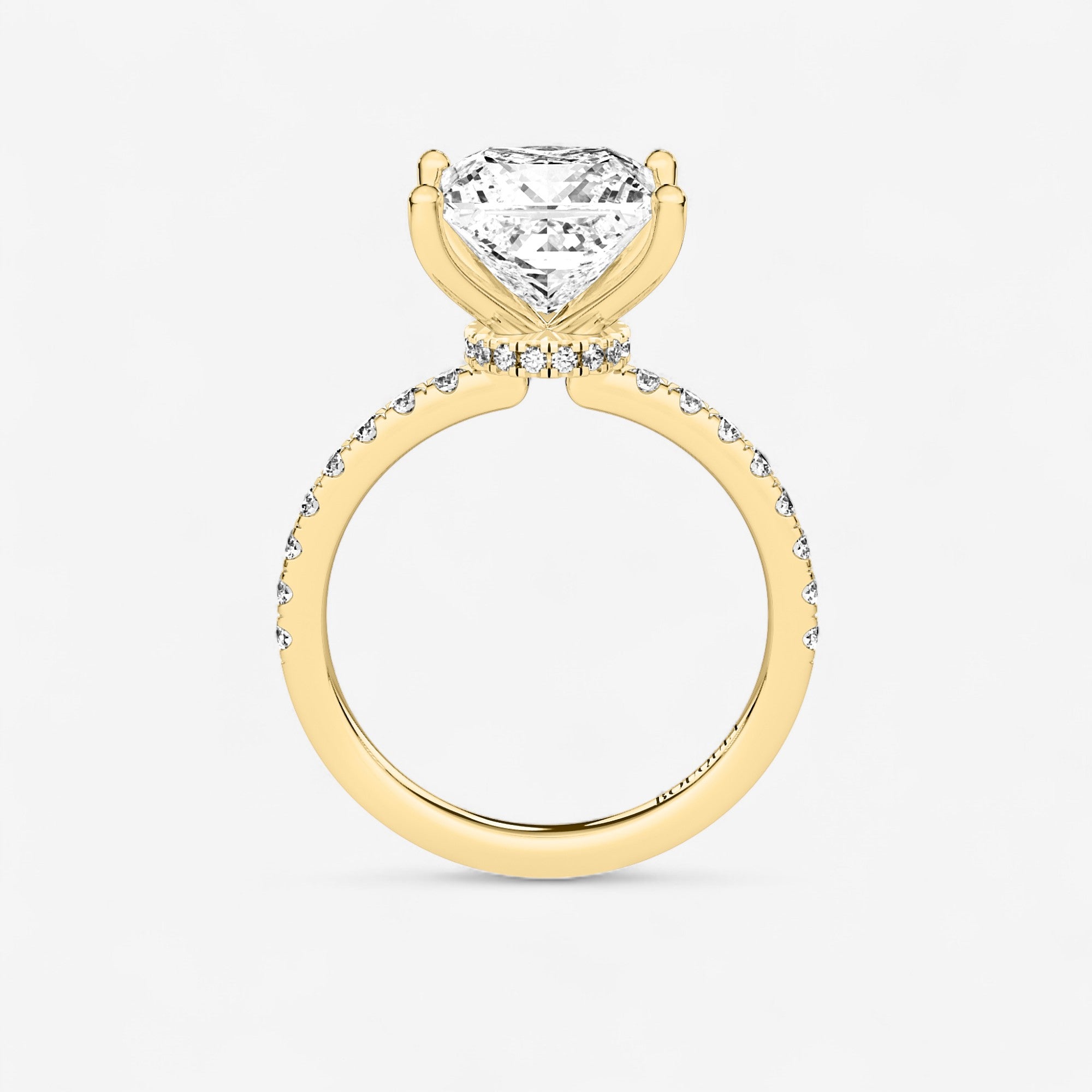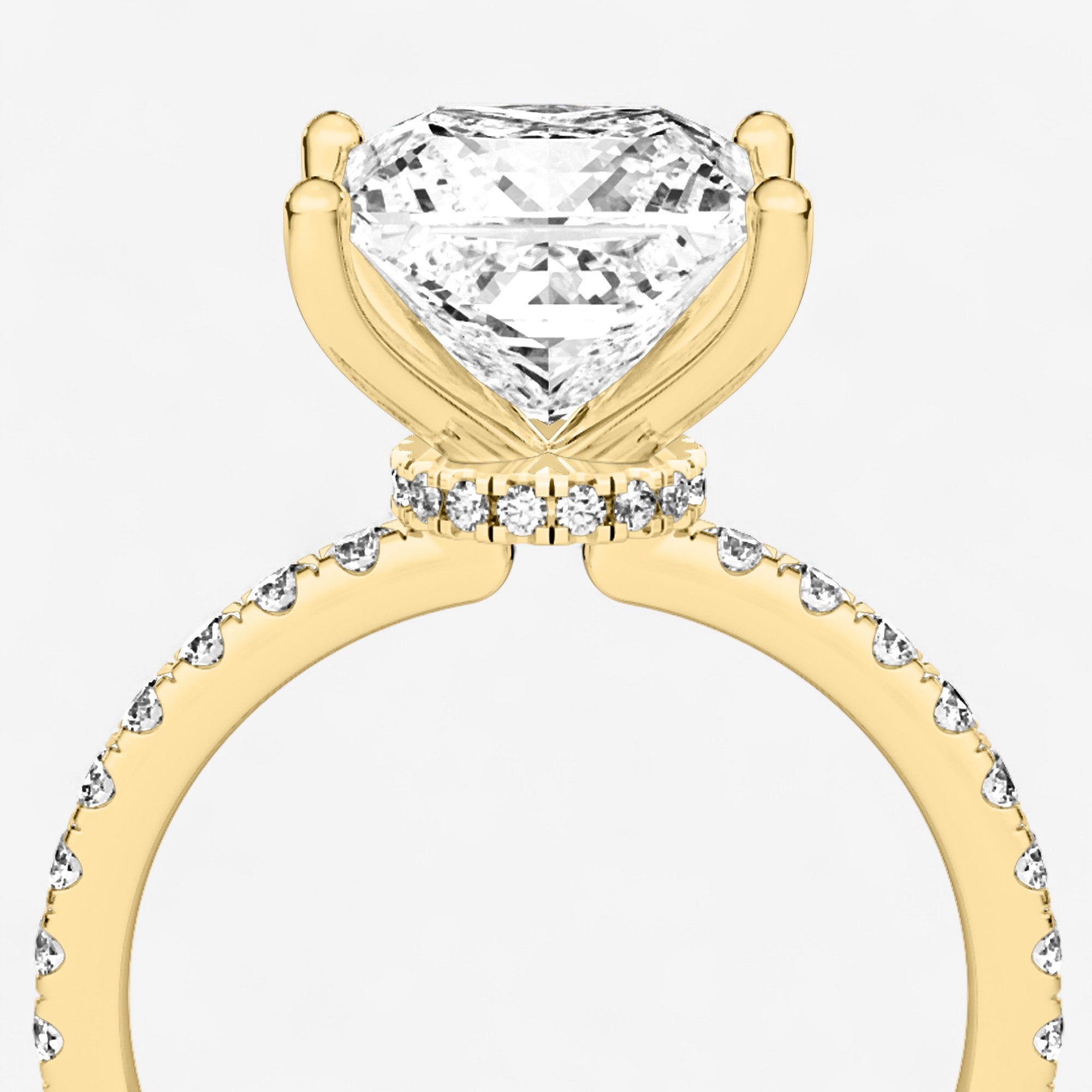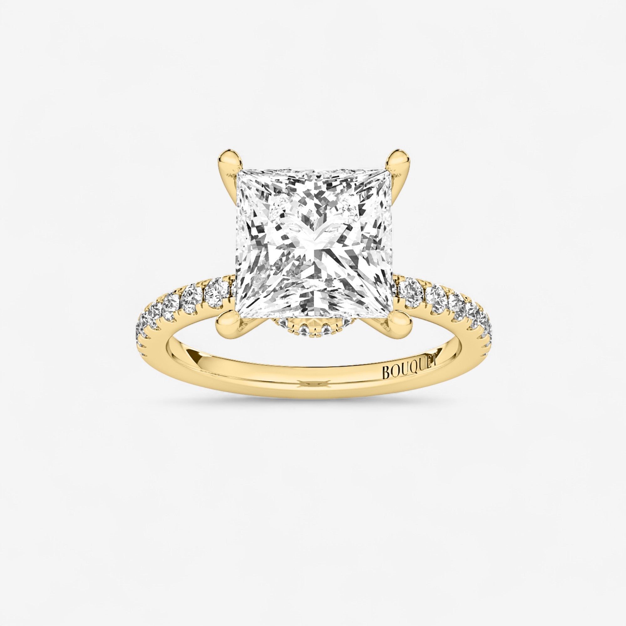 Introducing our Floating Hidden Halo Princess Cut Engagement Ring, where sophisticated elegance blends seamlessly with radiant brilliance. Meticulously designed as a timeless symbol of commitment, this striking piece features a beautiful princess center stone secured by four prongs without a basket, allowing maximum light to showcase its sparkle. The concealed halo beneath the setting adds dimension and shimmer, elevating its classic allure. Celebrate your unique love with the refined grace and subtle sophistication of this extraordinary engagement ring.