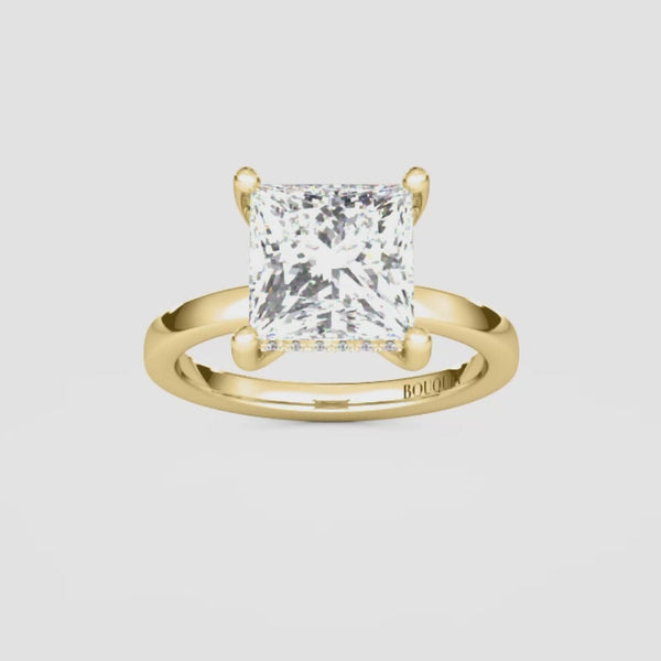 Discover the timeless beauty of the Hidden Halo Cushion Cut Engagement Ring, blending traditional elegance with dazzling sparkle. At its heart lies a gorgeous princess diamond, encircled by a subtle halo of gleaming lab-grown diamonds that enhance its sophisticated appeal. Crafted with thoughtful design and deep significance, this ring embodies enduring love and will be a treasured symbol of your commitment.