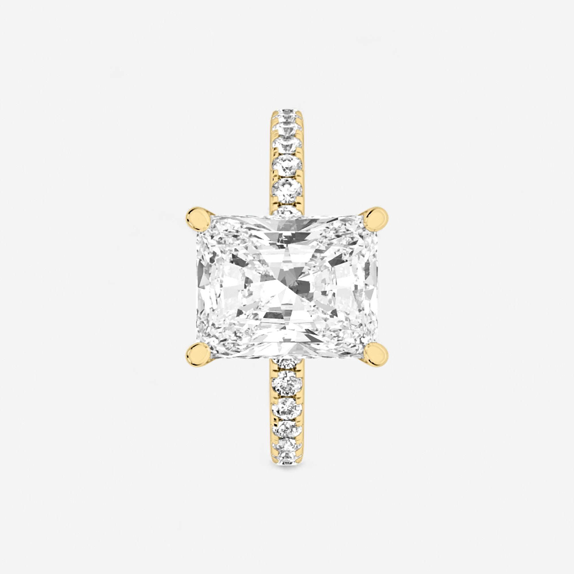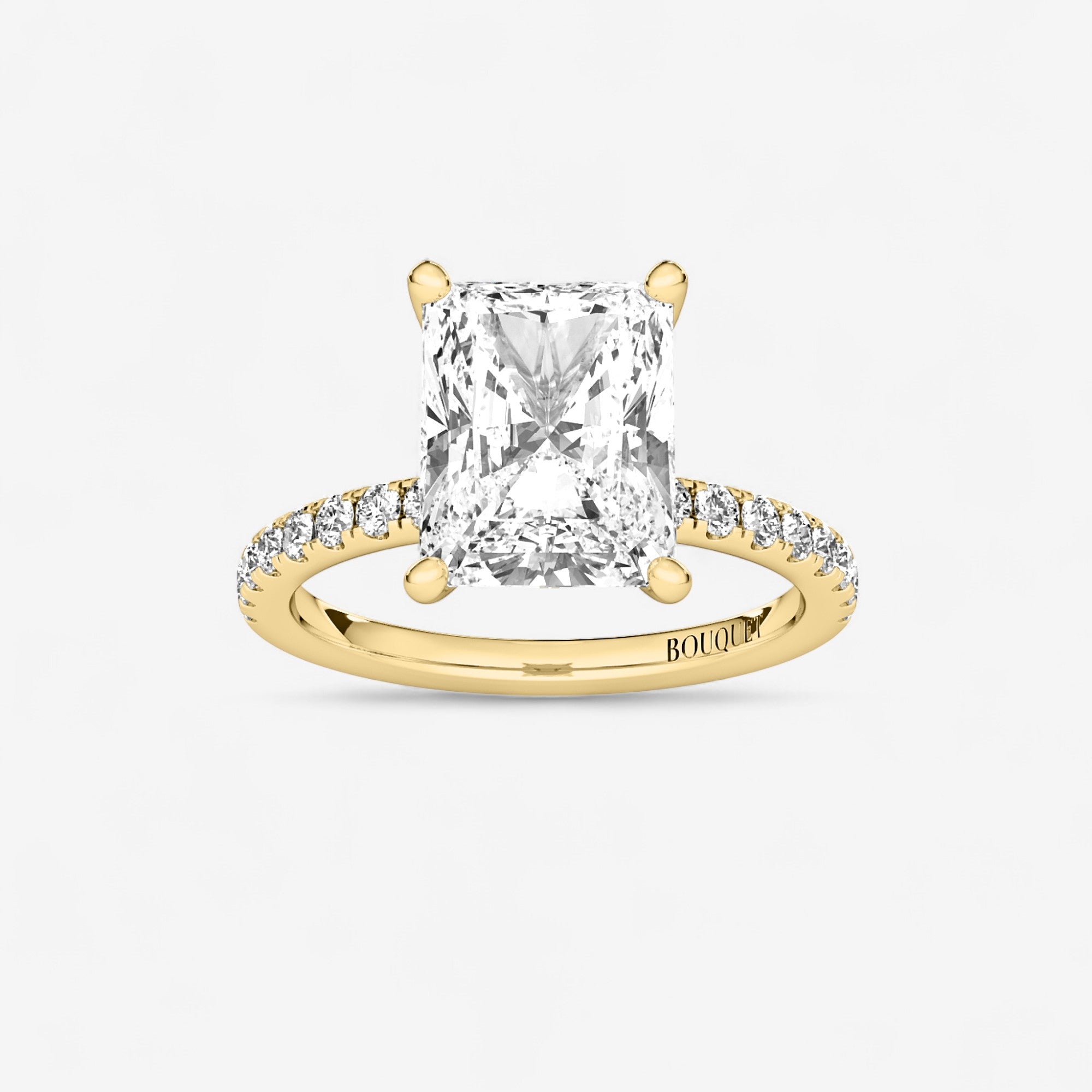 Introducing our Floating Hidden Halo Radiant Cut Engagement Ring, where sophisticated elegance blends seamlessly with radiant brilliance. Meticulously designed as a timeless symbol of commitment, this striking piece features a beautiful radiant center stone secured by four prongs without a basket, allowing maximum light to showcase its sparkle. The concealed halo beneath the setting adds dimension and shimmer, elevating its classic allure. Celebrate your unique love with the refined grace and subtle sophistication of this extraordinary engagement ring.