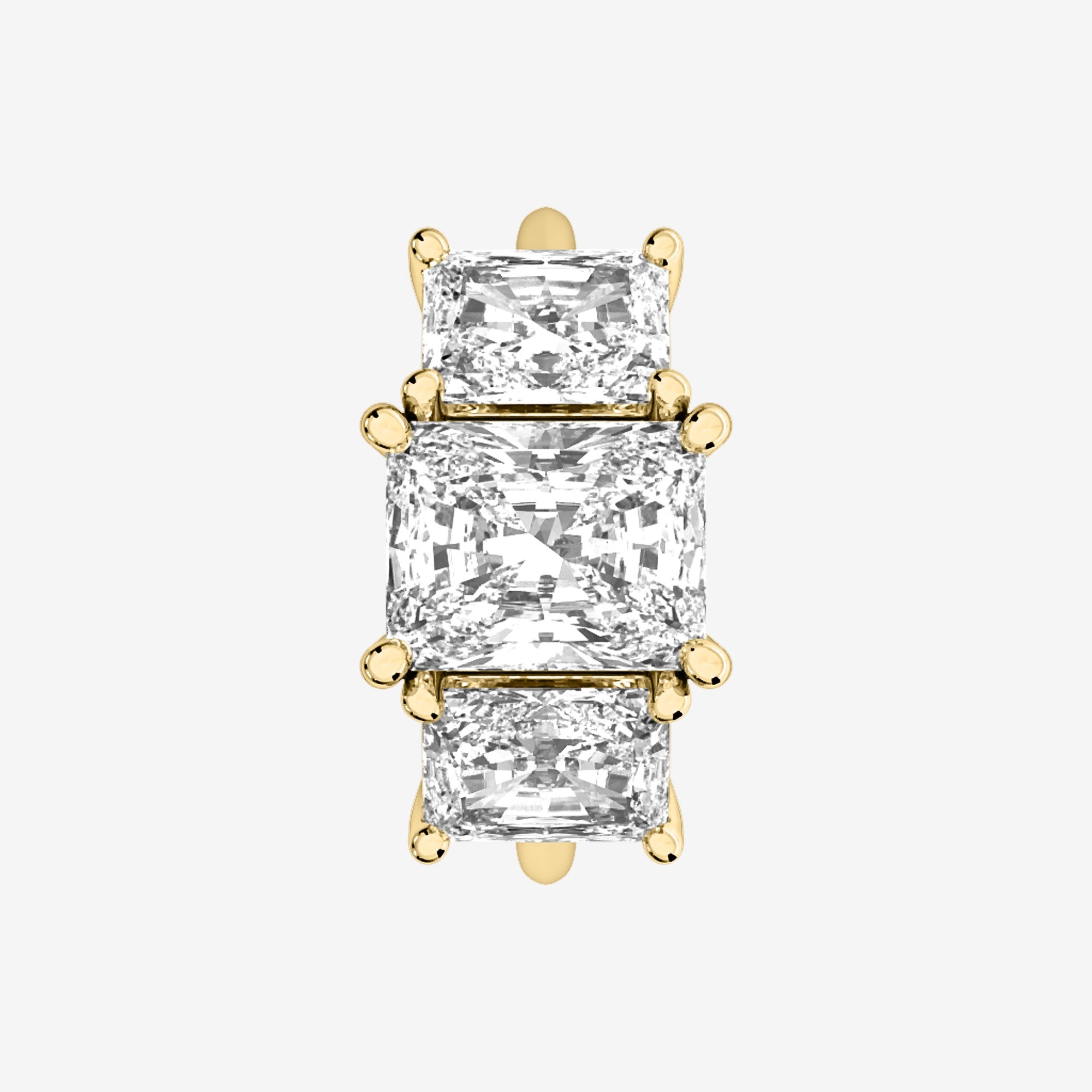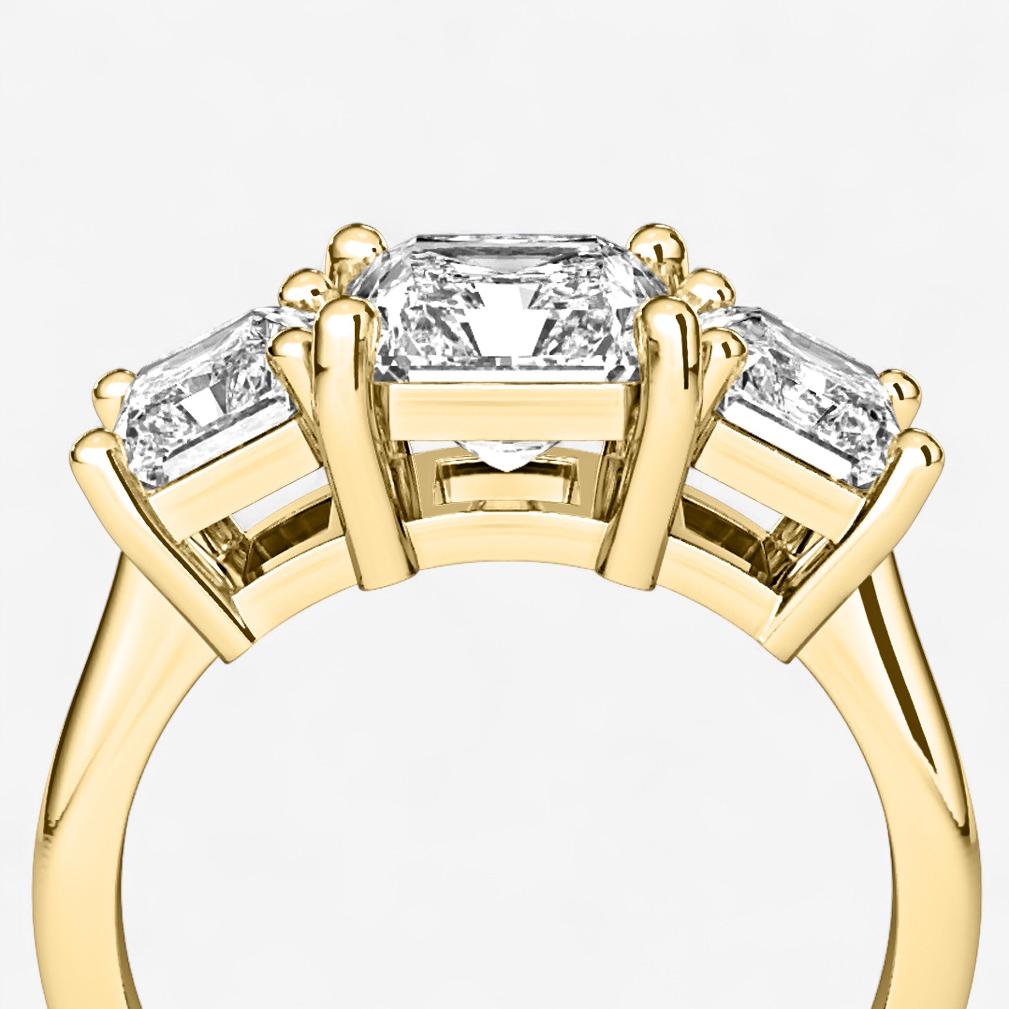 Elevate your love story with this Radiant Three Stone Engagement Ring, featuring three bold diamonds that embody strength and beauty. The rare elegance of triple stones symbolizes past, present, and future, making it a timeless declaration of commitment. This sophisticated design captivates with its radiant sparkle and exceptional craftsmanship, perfect for those who appreciate the extraordinary in every detail.