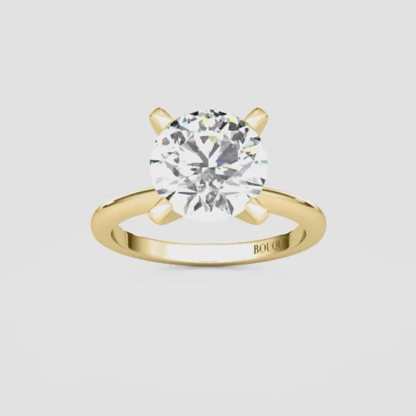 This petite solitaire engagement ring exudes refined elegance, embodying the essence of pure love through its classic design. Featuring a round lab-grown diamond set delicately in a timeless prong setting, it shines brilliantly atop a band available in 14K gold or platinum. Meticulous craftsmanship highlights every detail, resulting in a sophisticated symbol of devotion.