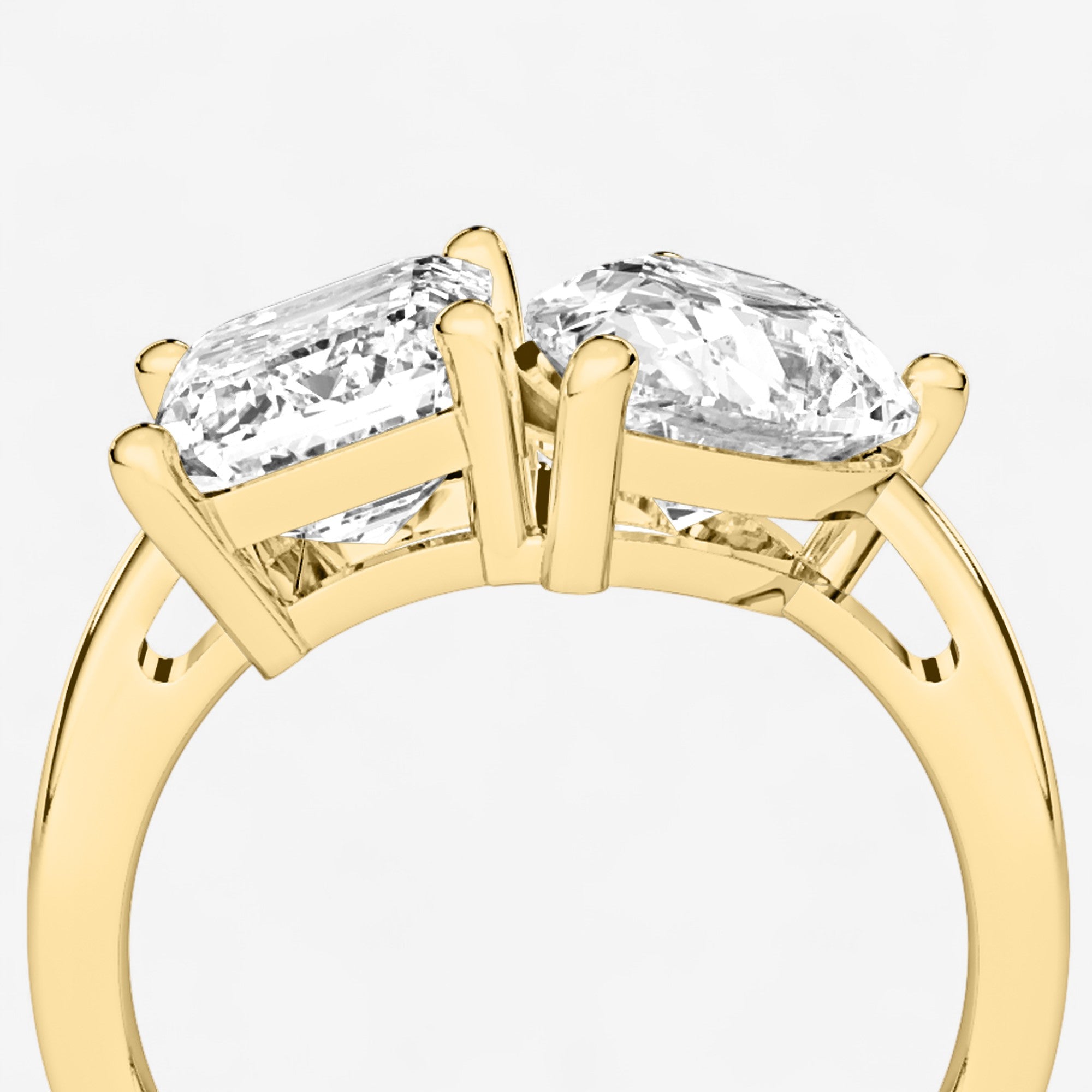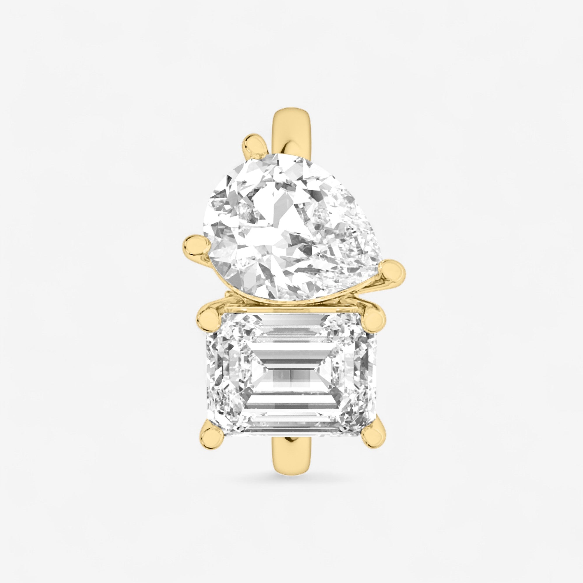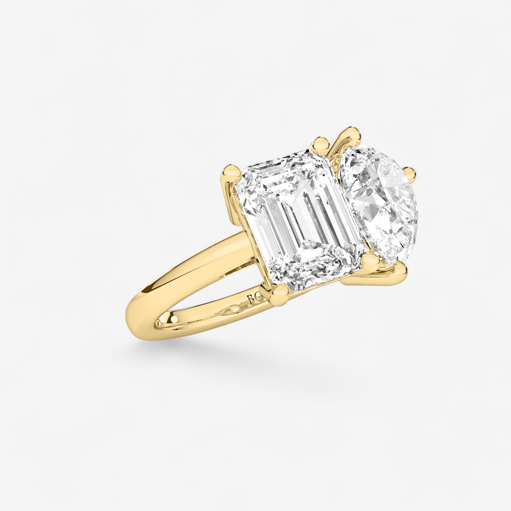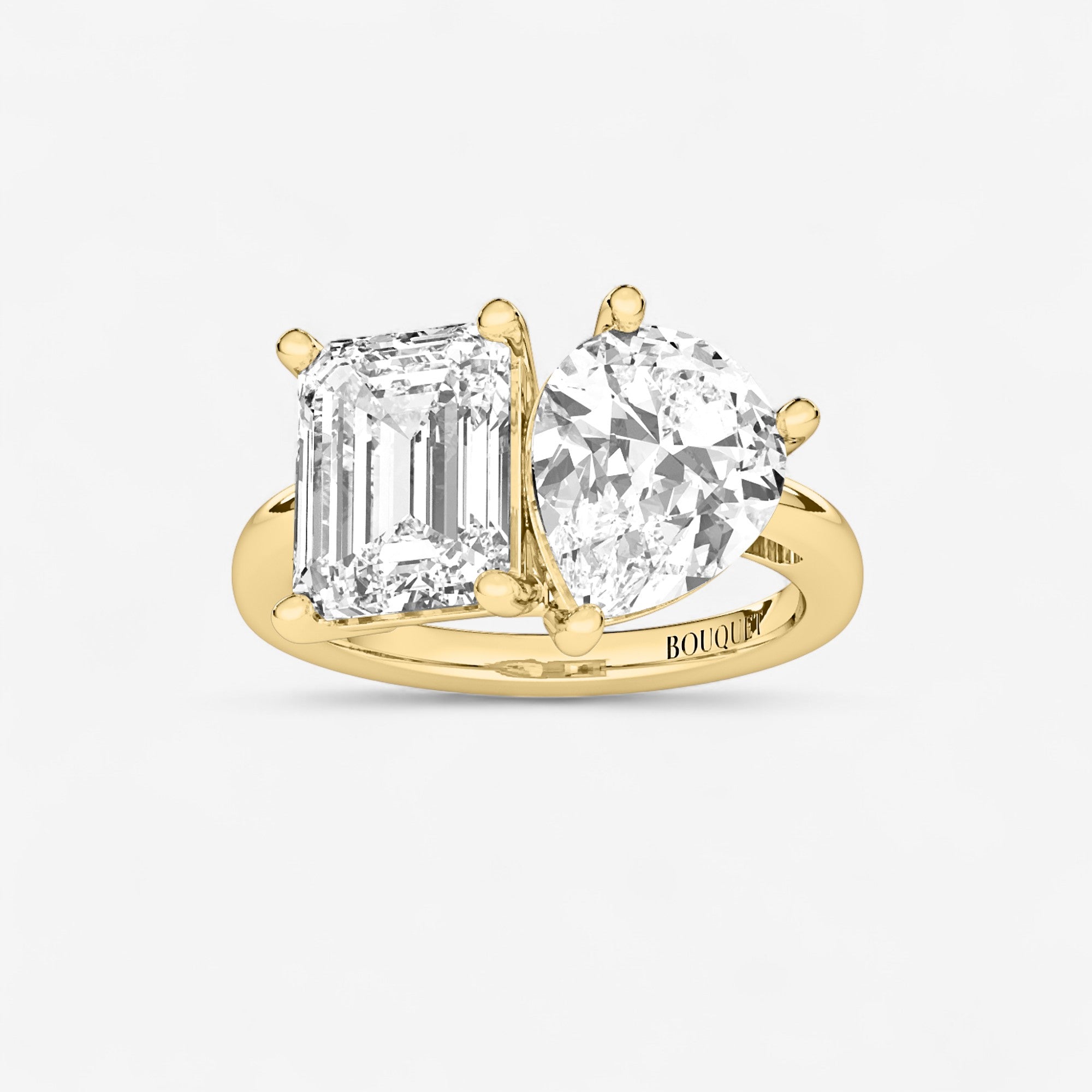 This stunning solitaire engagement ring symbolizes the union of two hearts, showcased through an elegant arrangement of pear and emerald-cut diamonds. Crafted in 14K gold or platinum, its design reflects a love story where two individual journeys, much like Bouquet and I, converge in a luminous embrace. From the Toi et Moi collection, this piece represents a flawless duo, distinct yet harmoniously intertwined, much like the deep connection it celebrates.